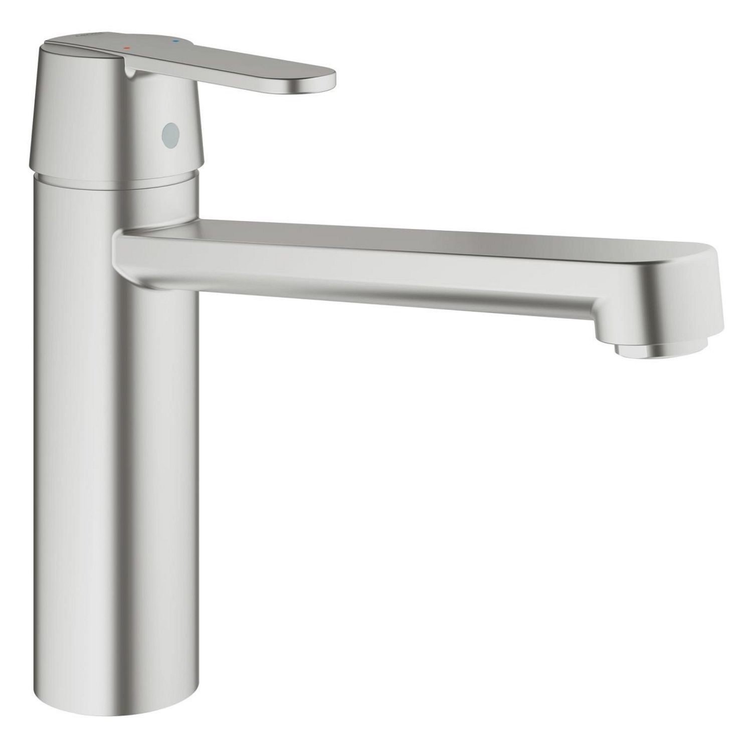 The GROHE Get Kitchen Mixer Tap with medium high spout offers a sleek, minimalist design paired with reliable functionality, making it a smart addition to contemporary kitchens. Its streamlined profile provides practical clearance for everyday tasks such as washing dishes and filling pans, while maintaining a compact footprint.