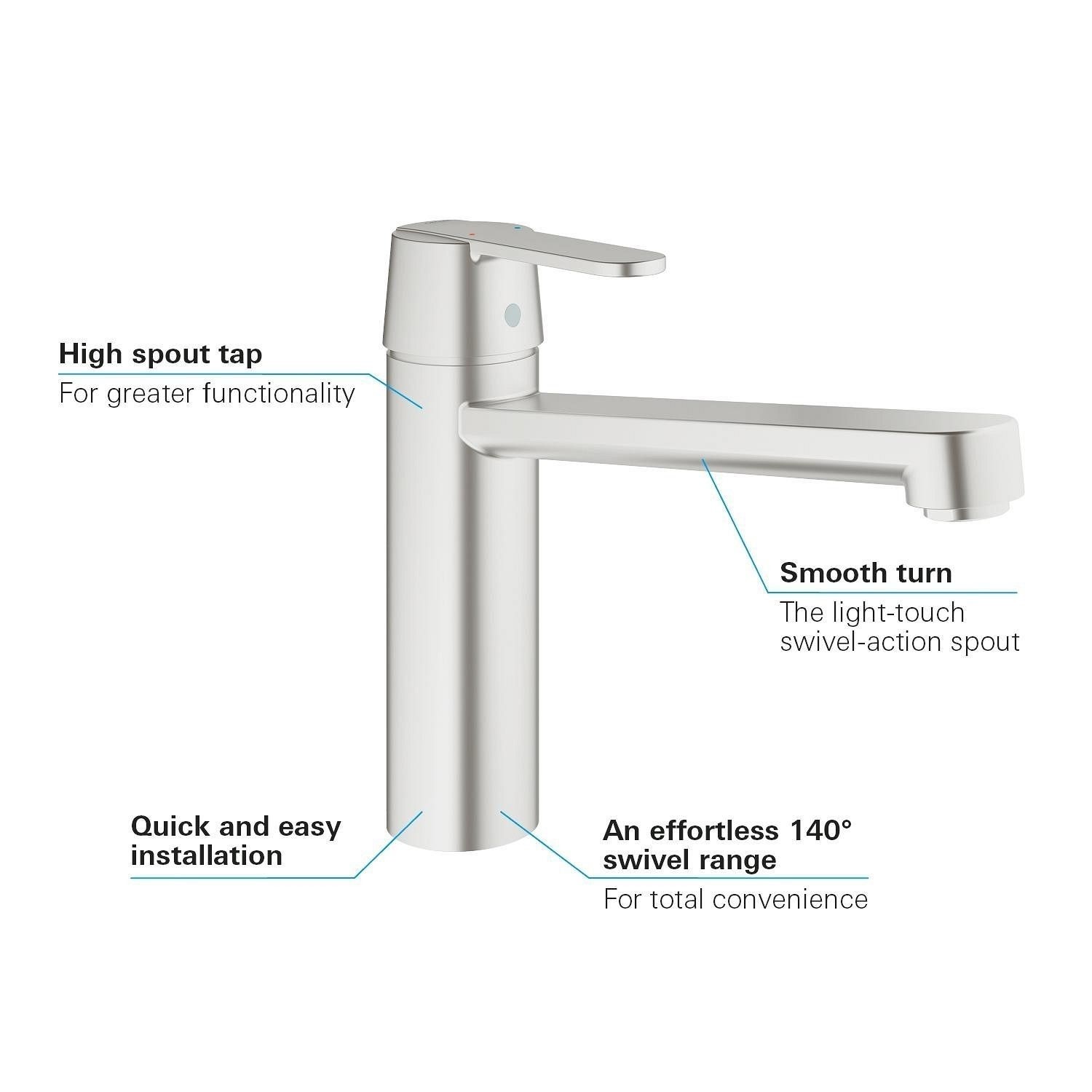 Engineered by GROHE, this mixer tap is suitable for use with systems operating from 1 bar pressure, offering dependable performance day after day. To maintain the appearance of the SuperSteel finish, avoid cleaning with harsh or abrasive chemicals.