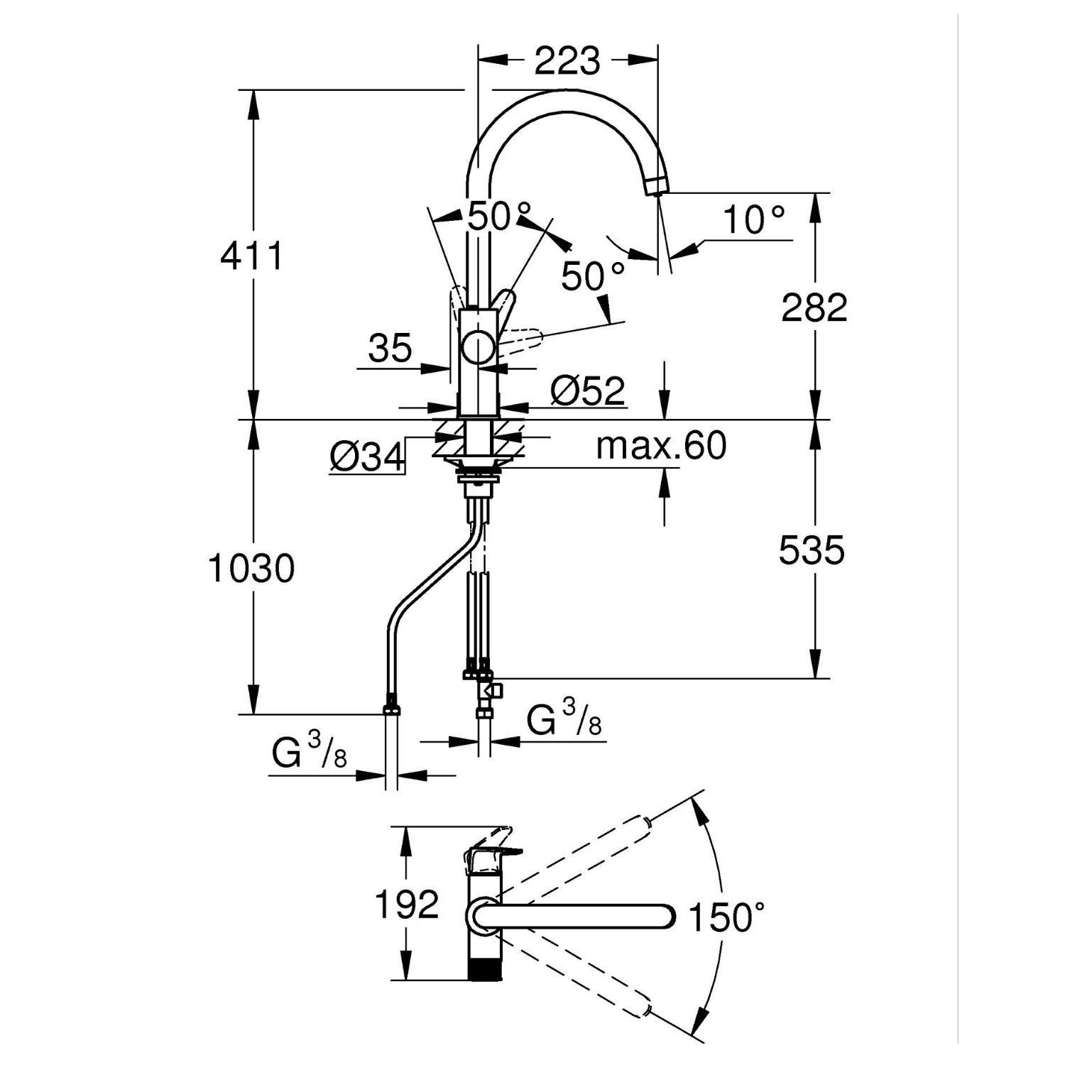 Crafted from durable brass and finished in polished chrome, this mixer tap benefits from GROHE’s galvanic coating process for a long-lasting, easy-to-clean shine. Equipped with a reliable 35mm ceramic cartridge and suitable for systems operating from 1 bar pressure, it’s engineered for dependable everyday use. To maintain the chrome finish, avoid cleaning with harsh or abrasive chemicals.