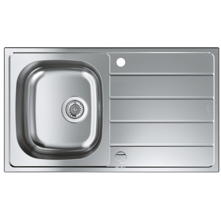 The GROHE K200 Inset Stainless Steel Sink features a single rectangular bowl and reversible drainer, offering flexibility and functionality for modern kitchens. Its generous bowl depth allows for easy washing of large pots and pans, while the reversible drainer can be installed on either side to suit your kitchen layout.