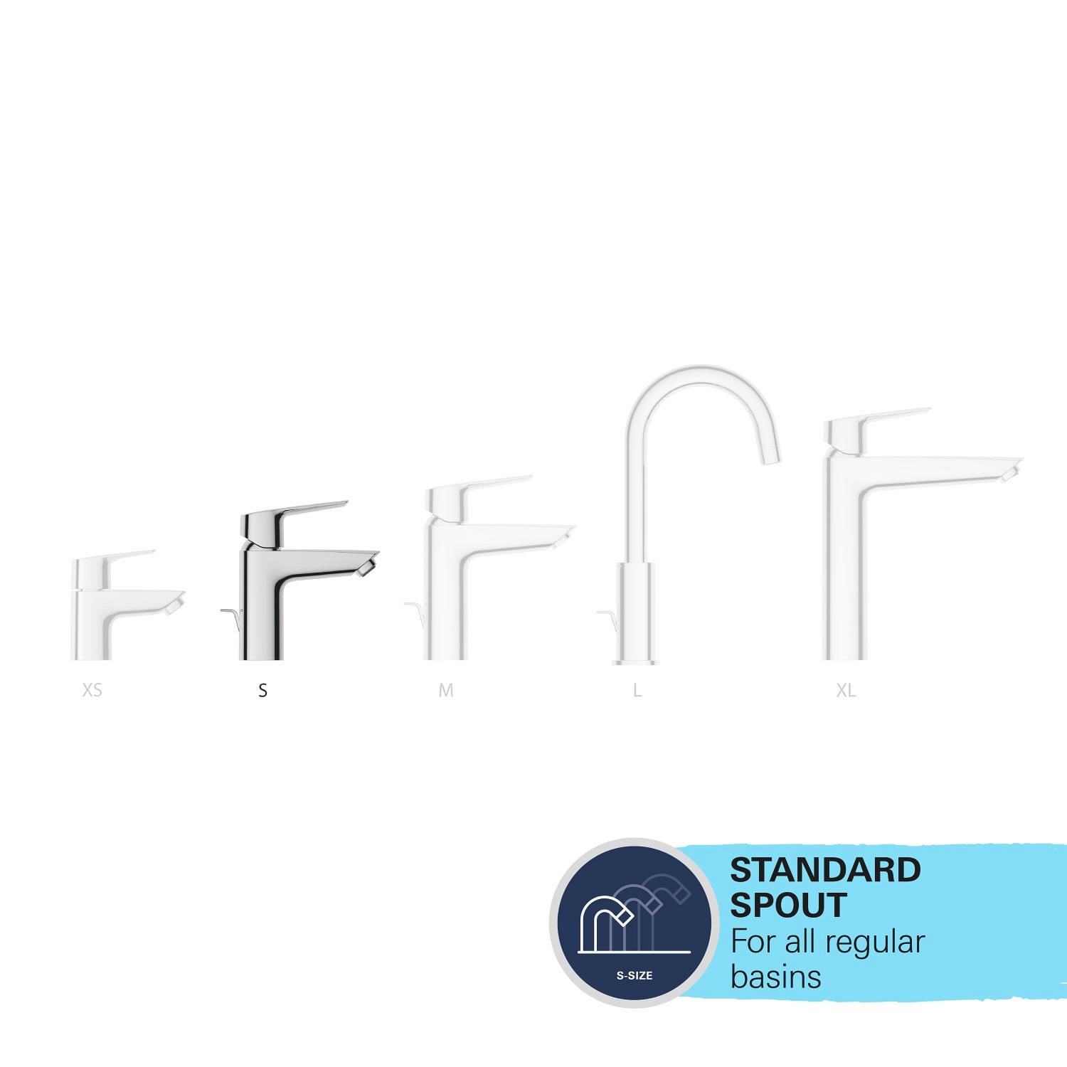 This GROHE Start basin mixer in matt black is perfect for small bathrooms and cloakrooms. The trending matt black colour and branded product quickly upgrades your bathroom, with its slim and contemporary profile, and increased spout height for greater user comfort. The slotted push-open pop-up waste which is included, can be opened and closed with a light fingertip push.