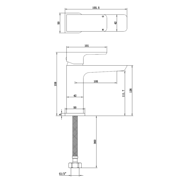 - Dimensions: H159 x W50 x D155.5mm