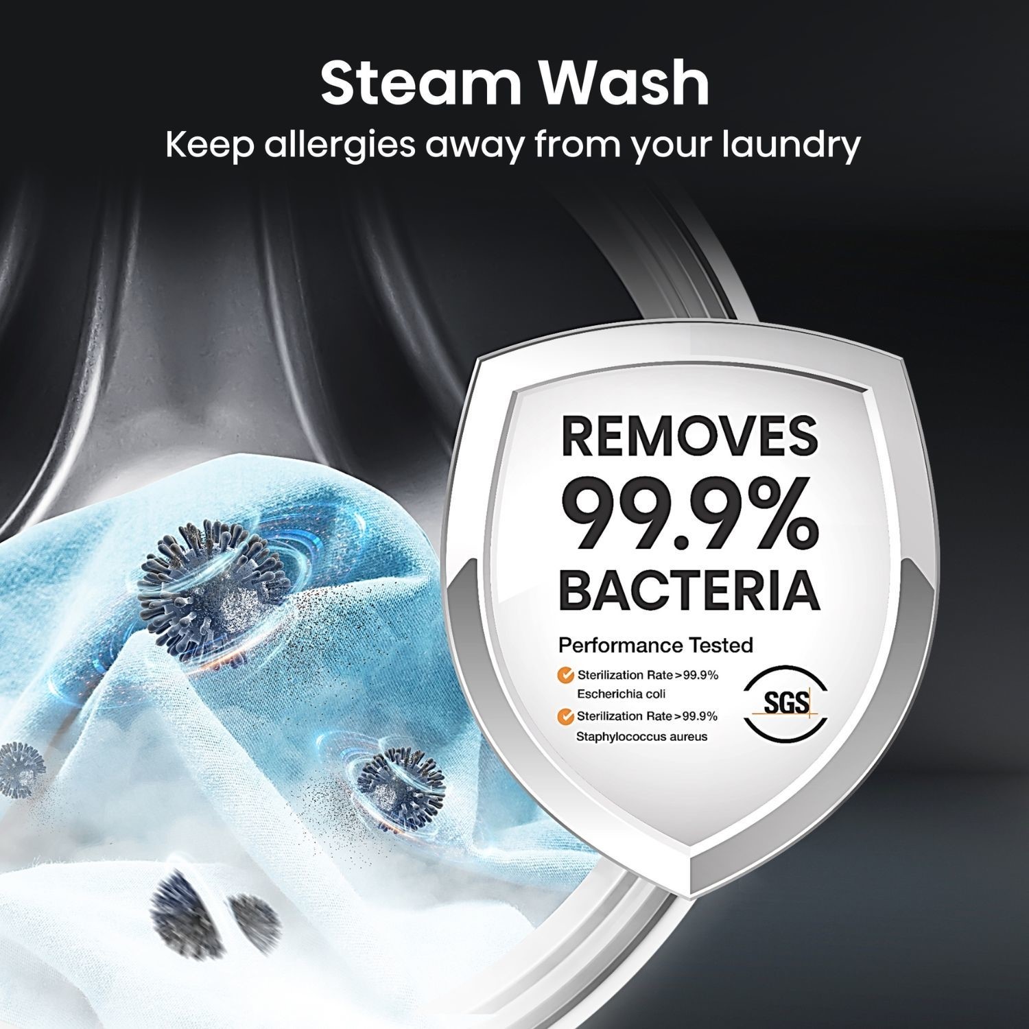 The high-temperature steam is released from the bottom of the drum, and the steam fully penetrates the clothes, which can eliminate 99.9%* of Escherichia coli and Staphylococcus aureus attached to the clothes.