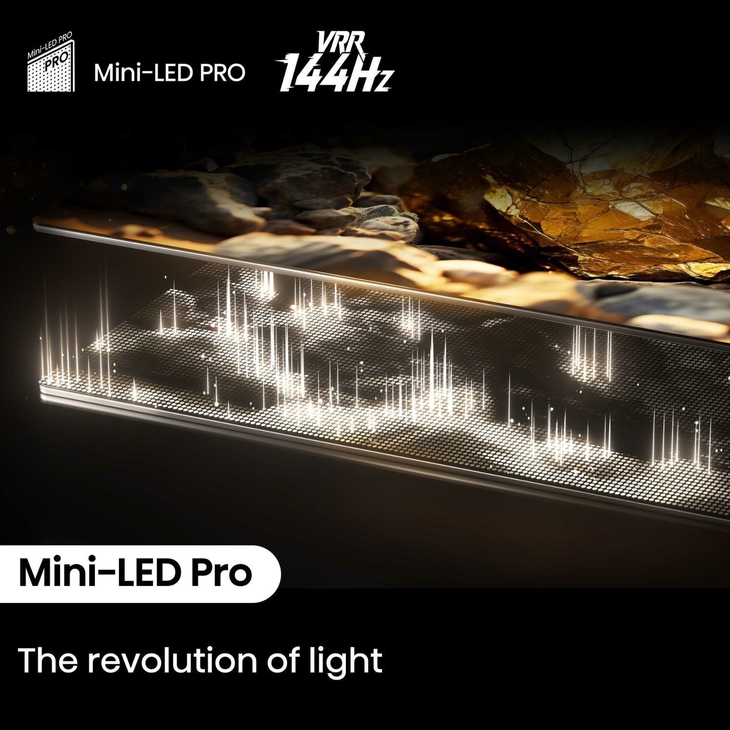 Witness the revolution of light with Mini-LED PRO. Thousands of tiny LEDs across hundreds of dimming zones give exceptional control over brightness, contrast, and colour, delivering deep blacks, dazzling highlights, and lifelike images. Enhanced by Mini-LED HDR3000 and 144Hz panel technology, your favourite movies, shows, and games come alive like never before.