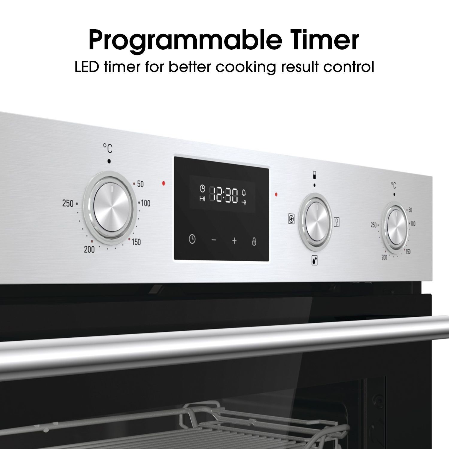 Set the oven timer to automatically switch off when your food is perfectly cooked, so you never have to worry about overcooking lunch or dinner again.