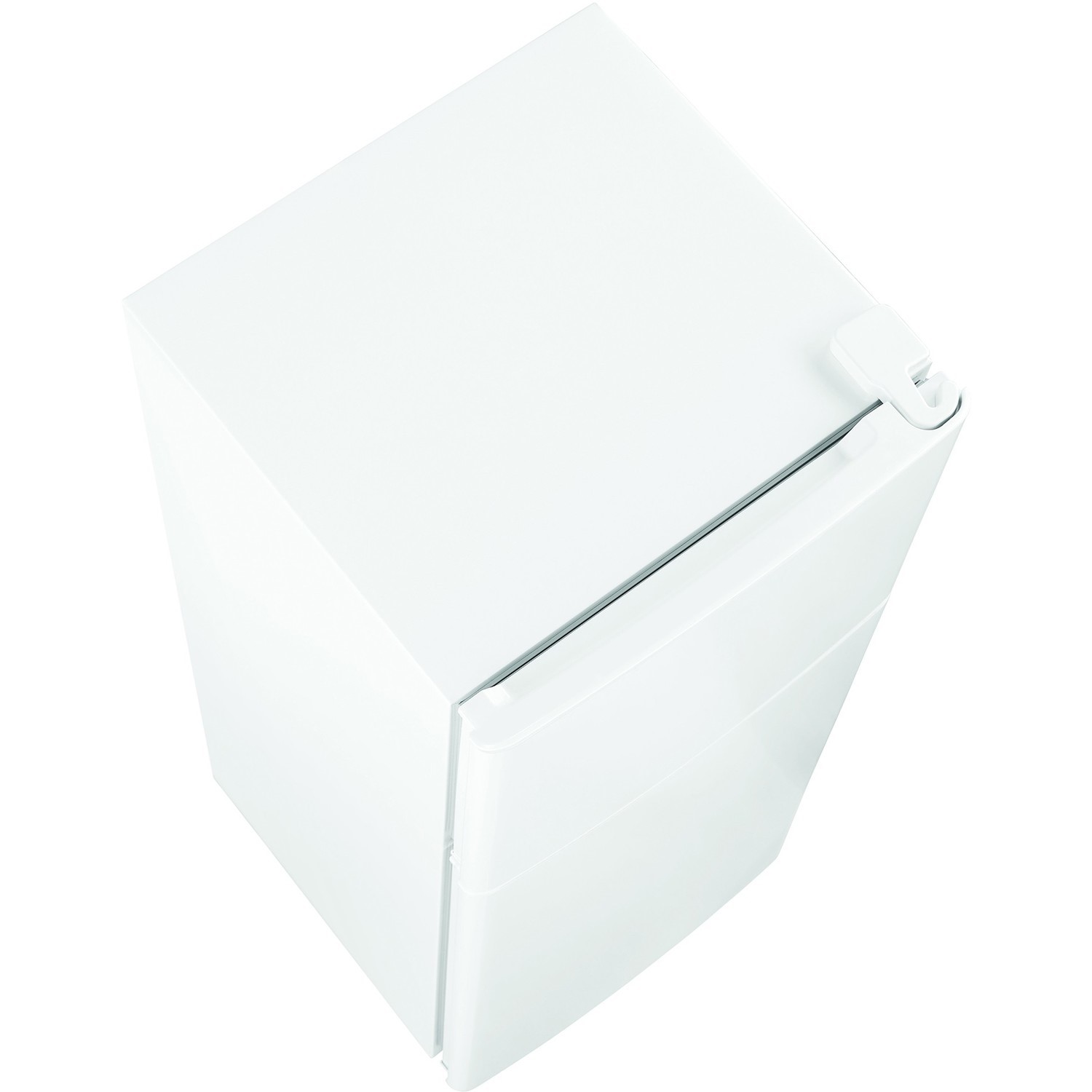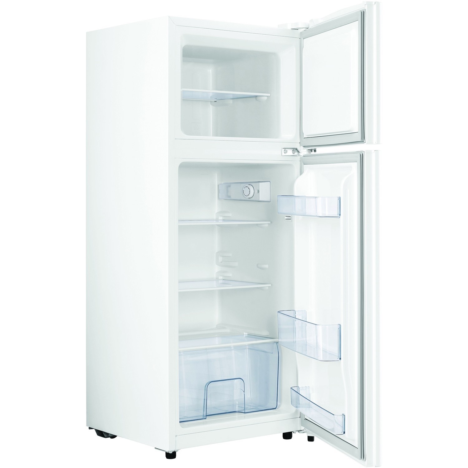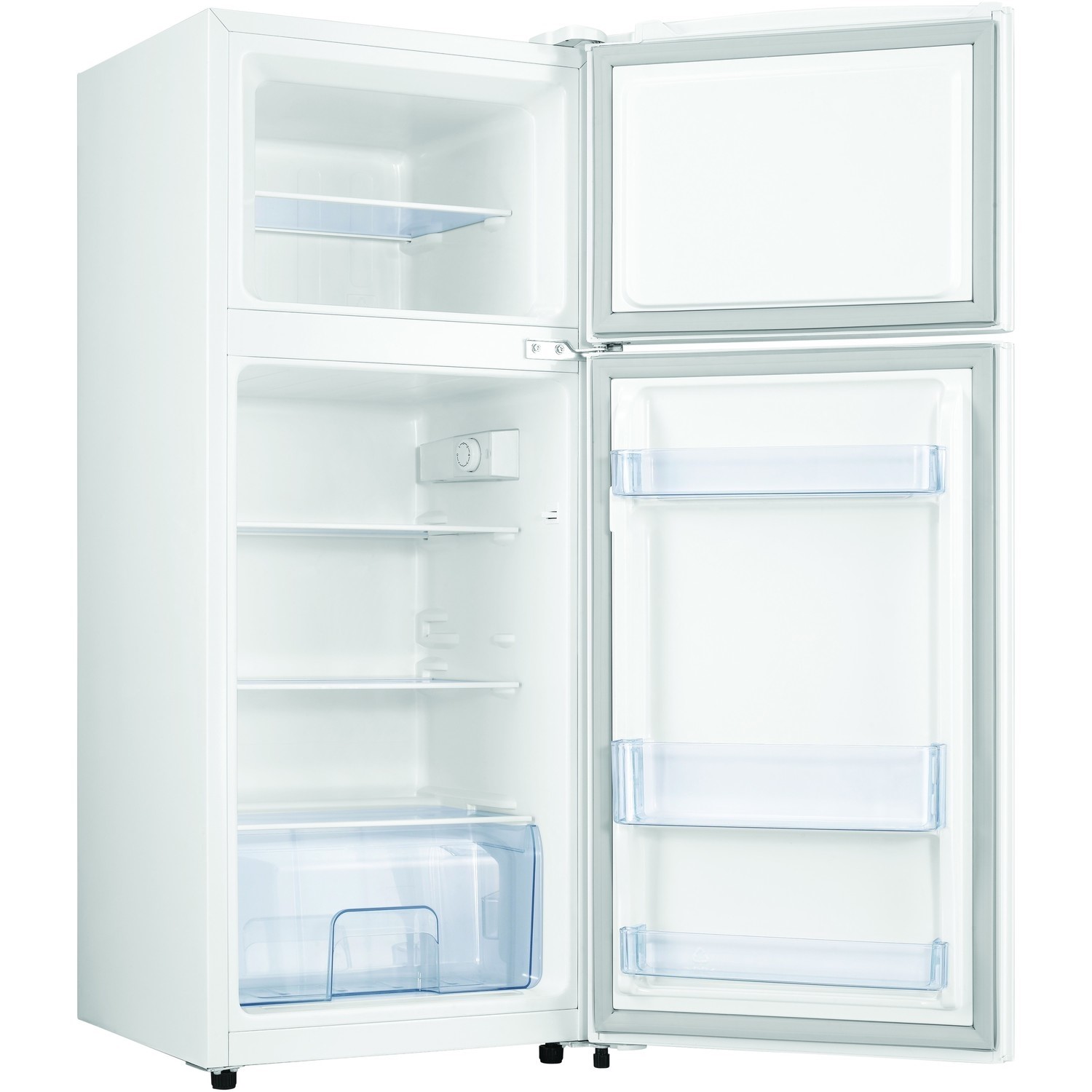 Providing ample storage space for your essential items, the 120L fridge freezer gives you excellent cooling power. With three strong glass shelves, you can easily separate raw and cooked items hygienically, ready to be used. A single fruit and veg drawer keeps your produce crisp keeping your items fresher for longer. Also featuring an egg tray and three door balconies, perfect for bottles and cans, this fridge is surprisingly spacious. An adjustable thermostat gives you the ability to create the perfect cooling conditions for your items. The freezer is positioned above the fridge, providing easy access to your frozen goods.