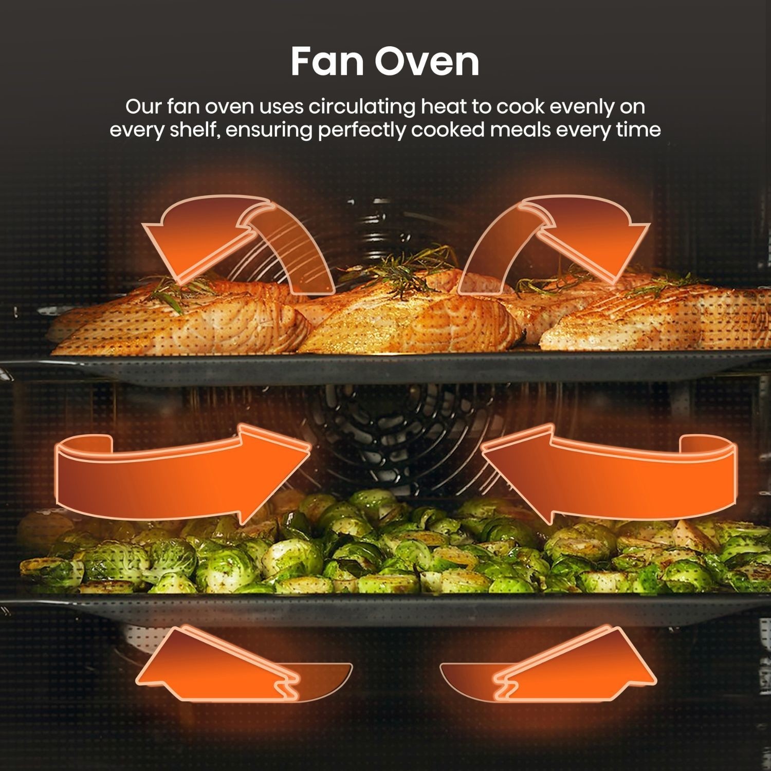 Designed to revolutionise your cooking routine, the fast preheat reaches 200°C in just 5 minutes, saving you valuable time. Enjoy consistent cooking results with even bake distribution, perfect for quick weekday dinners or weekend feasts.