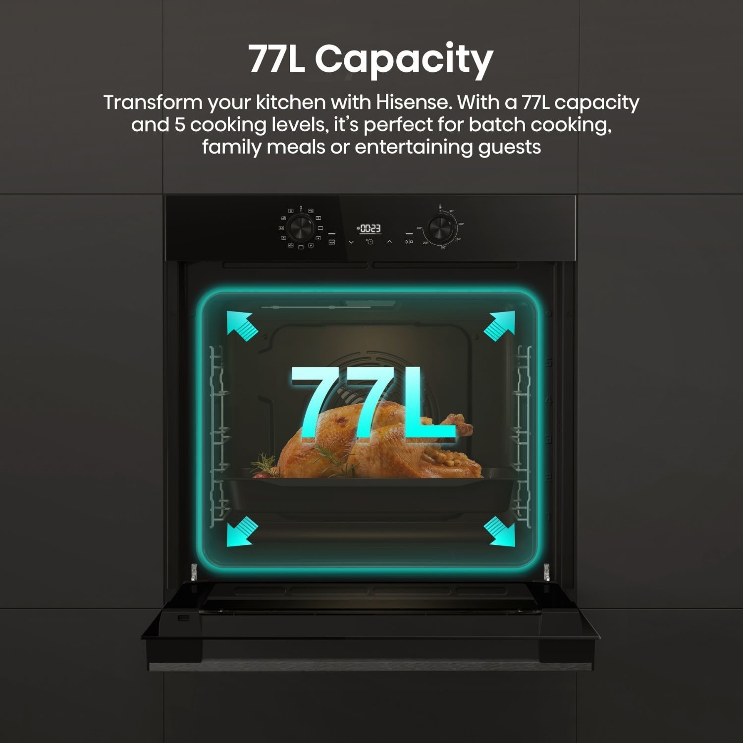 Transform your kitchen with the Hisense 77L capacity oven, perfect for family meals and entertaining guests. This spacious oven features 5 cooking levels, allowing you to simultaneously cook meals, ideal for hosting guests or if you’re an avid batch cooker.