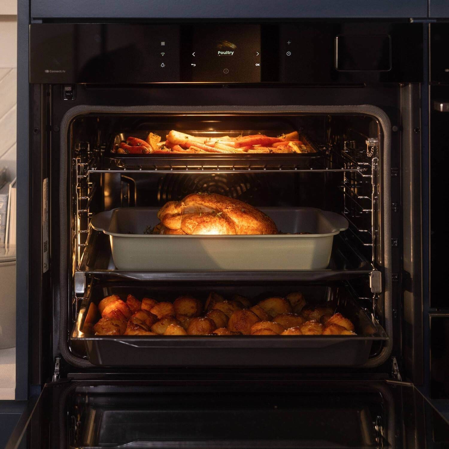 Upgrade your cooking experience with the Hi8 BlackLine oven, featuring a state-of-the-art TFT colour display with clear and vibrant visuals for precise cooking instructions and settings. This innovative technology transforms your kitchen with enhanced functionality and style.