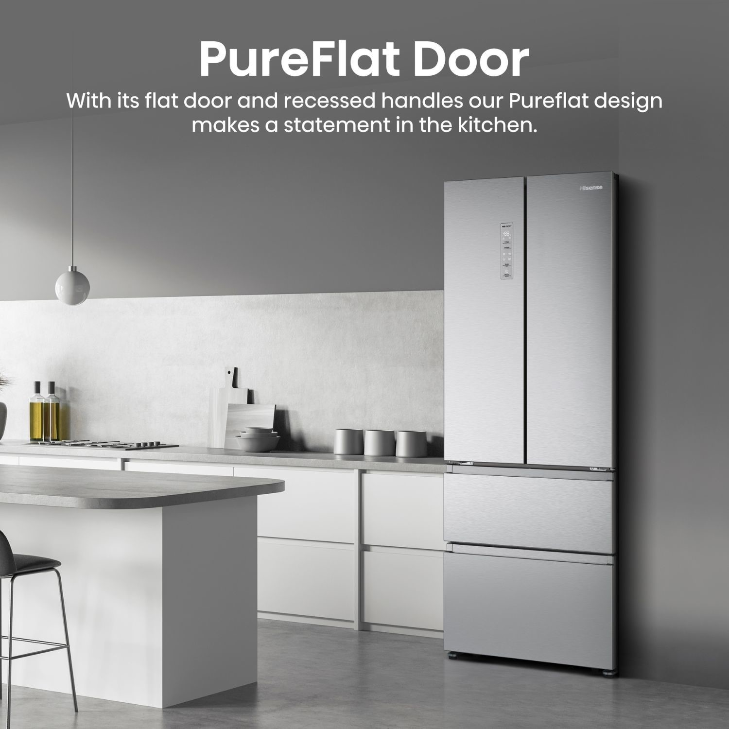 Let this spacious Hisense American Fridge Freezer be the hero of your kitchen. With Super Cool technology, it rapidly chills newly added food to maintain freshness - handy if the drive back from the supermarket took longer than expected. And Super Freeze works in the same way, so your frozen smoothie mix will keep all its goodness locked in. If that wasn’t enough, your freezer will stay at an even temperature with Total No Frost technology circulating cold air. Now you can wave goodbye to the villain of this story - so long icy build-ups.