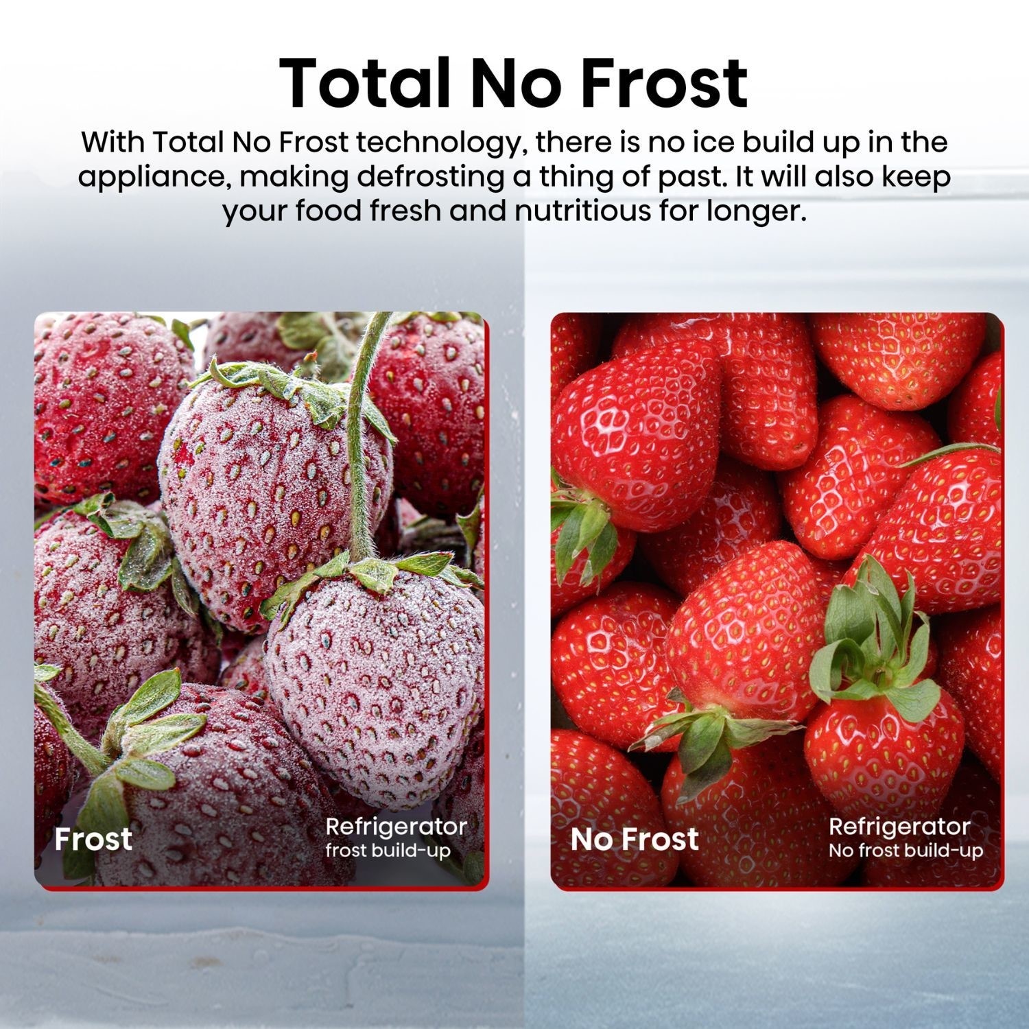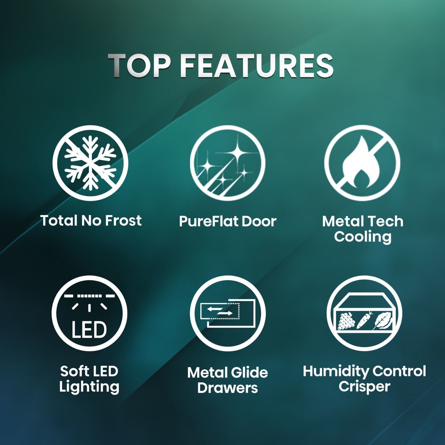 Maintains even temperatures throughout the fridge to prevent icy build-ups, so you’ll never have to manually defrost again.