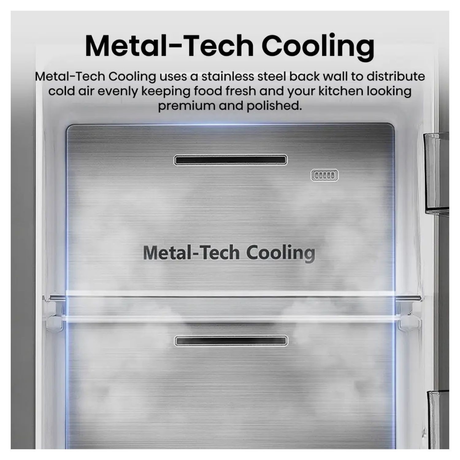 Freshness is guaranteed with Metal-Tech Cooling. A stainless steel back wall distributes cold air evenly, keeping food fresh while giving your kitchen a premium, polished look.