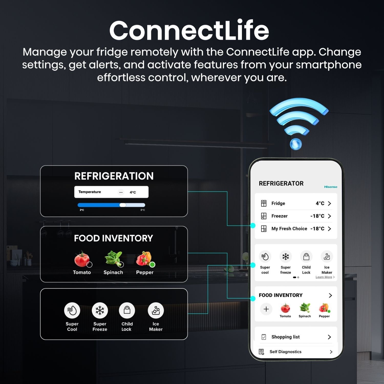 The My Fresh Choice zone gives you the freedom to convert between fridge and freezer space, with adjustable temperatures from -18°C to +5°C for tailored food storage.