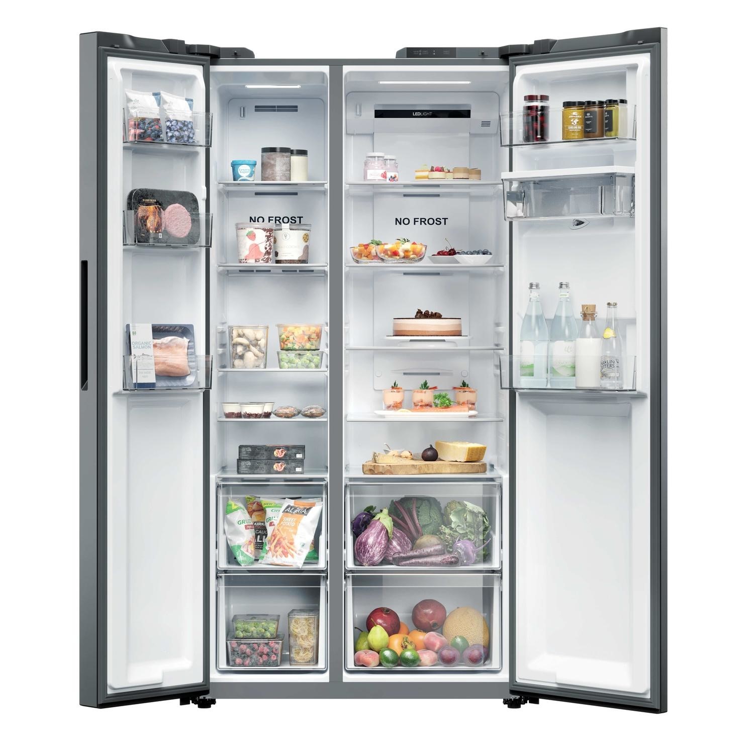 H-Fridge 500 Maxi, with its easy-to-access side by side design, offers a large storage capacity to organize all the food you need. At 90 cm wide, Hoover Side By Side 90 refrigerators offer large food storage capacity while providing easy access to both fridge and freezer spaces. The generous storage space allows you to store a large amount of food while keeping the space uncluttered and organized. They feature an elegant design that can fit any kitchen style.