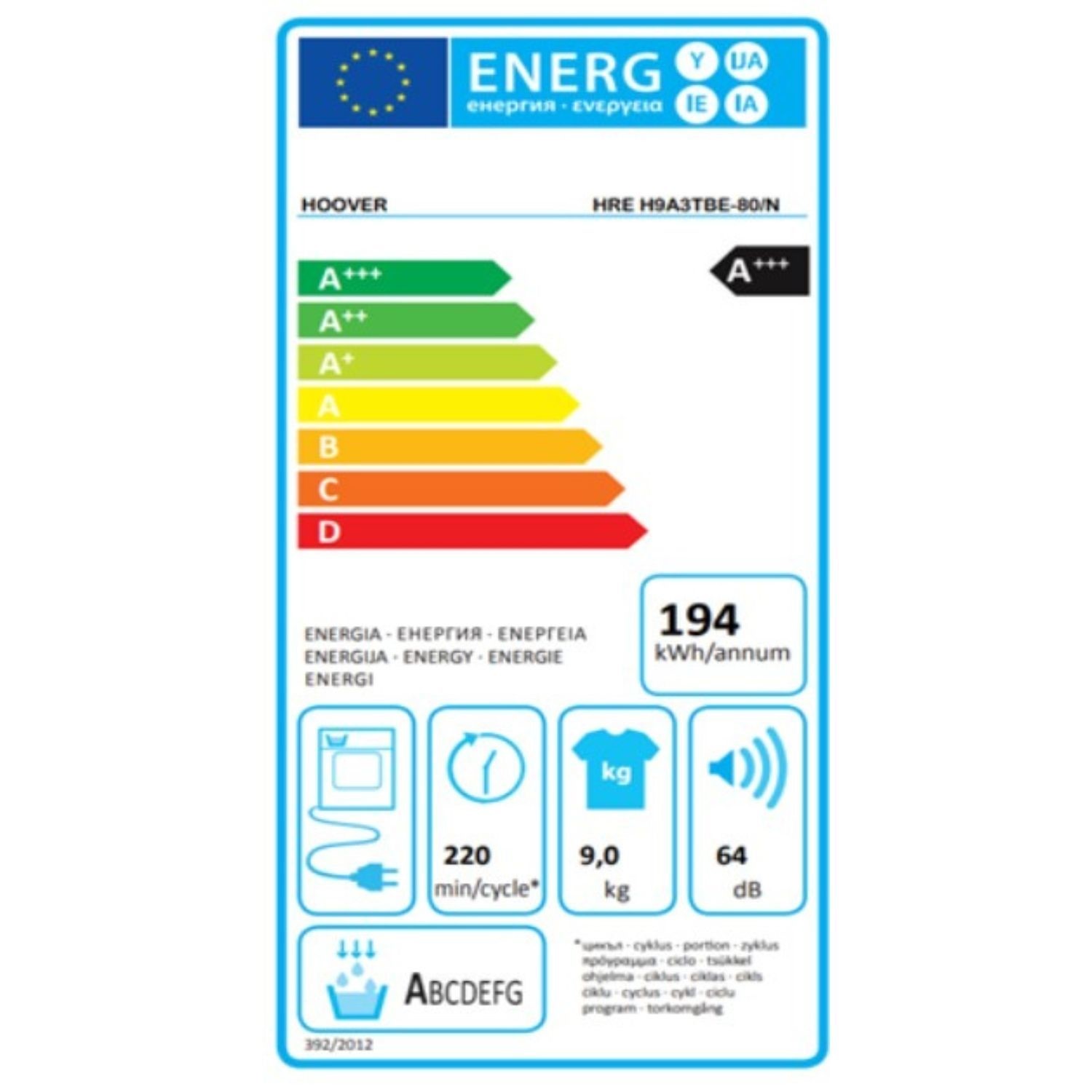 The Hoover HRE H9A3TBE-80/N H-Dry 350 Heat Pump Tumble Dryer takes the hassle out of laundry with its large 9kg capacity, perfect for busy households. Clever sensor drying ensures your clothes are treated with care, stopping the cycle when they're perfectly dry. With Wi-Fi connectivity, you can control your drying schedule remotely, while the delay start feature helps you run loads when it suits you. For those in a hurry, rapid cycles get the job done fast without compromising results. Its heat pump inverter technology is energy efficient, earning it an A+++ rating – so you can enjoy eco-friendly performance without skimping on convenience or reliability.