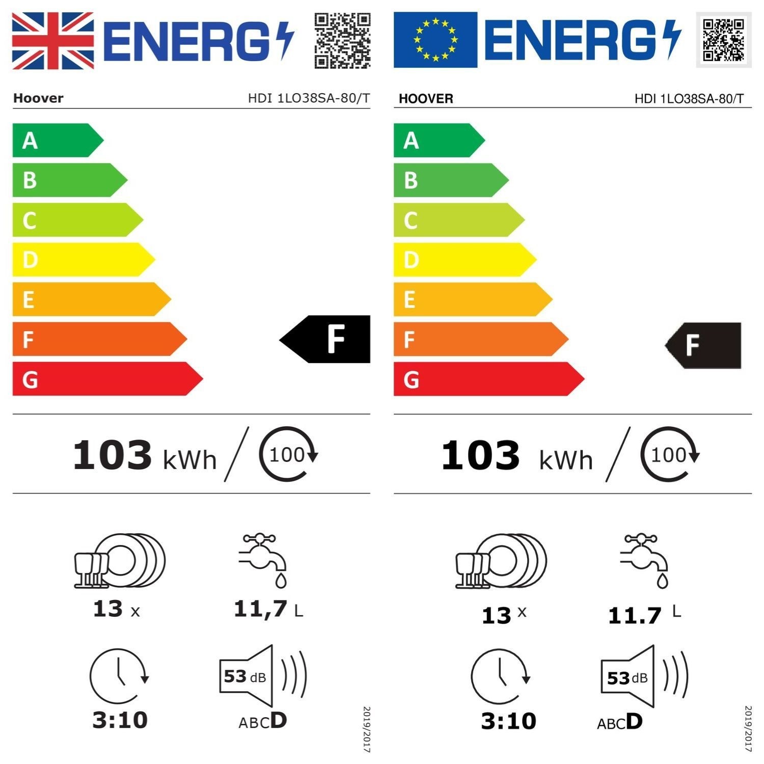 The Hoover HDI 1LO38SA-80/T Fully-integrated Dishwasher allows you to wash up to 13 place settings in one load. Plus thanks to the smart technology, you can operate and monitor the dishwasher with the Hoover Wizard app on your smartphone.