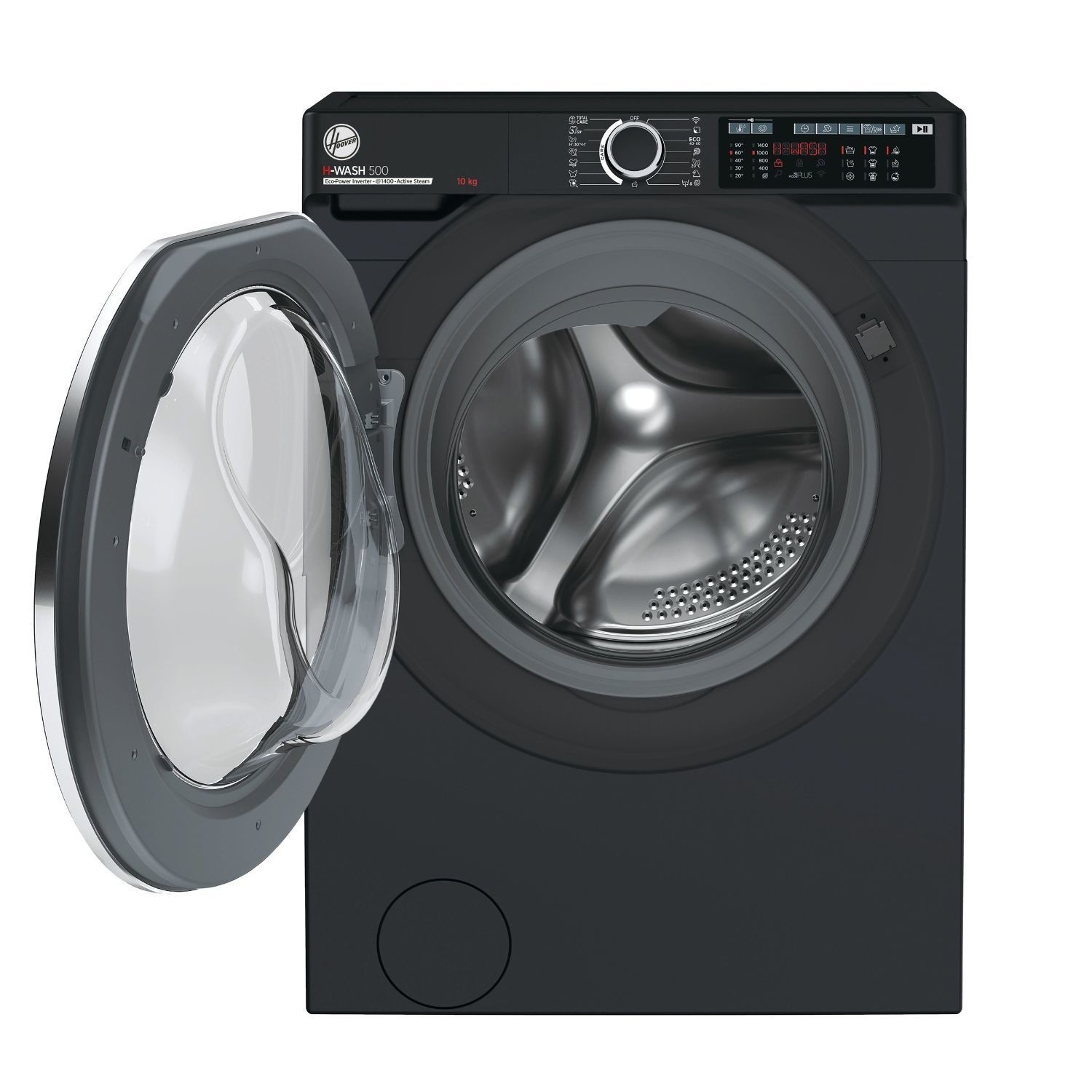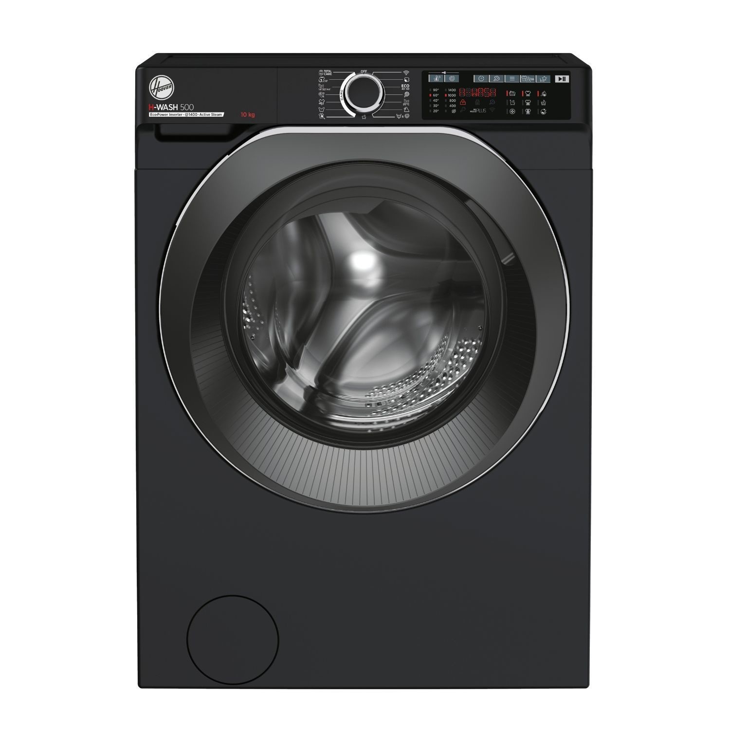 The Hoover H-Wash 500 HW 410AMBCB/1-80 freestanding washing machine is designed to handle even the largest laundry loads with ease. Its extra-large 10kg load capacity, it is the perfect choice for large families, allowing you to wash more at once and tackle those heavy duvets with ease. The Eco-Power inverter motor provides long-lasting reliability and quiet performance, so you can run a cycle at any time without disturbing your home life.