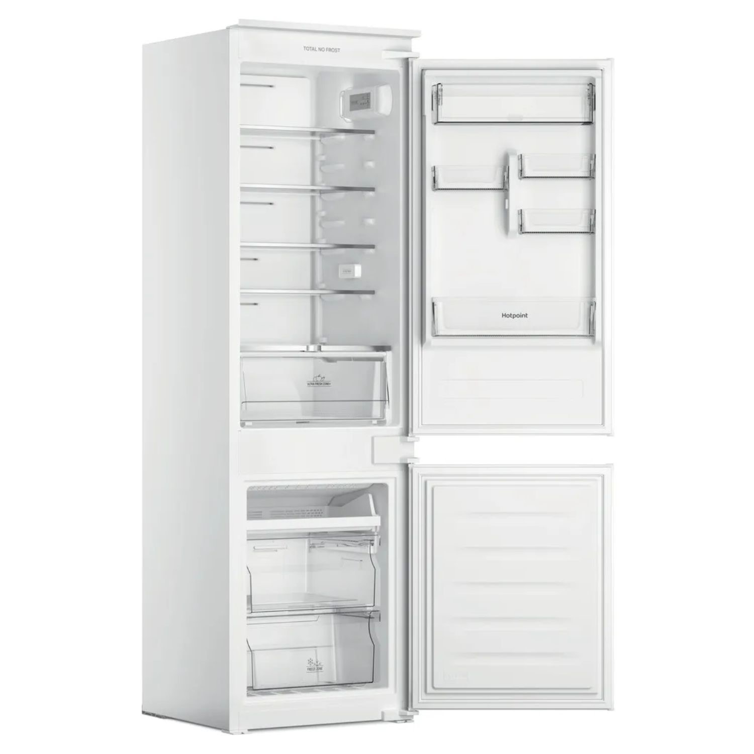 The Hotpoint HTC18 T112 is an integrated fridge freezer designed to blend seamlessly into your kitchen, and with a total capacity of 250 litres, it has ample space to store your fresh and frozen foods. The fridge is equipped with technology that preserves your food, such as the Total No Frost technology which circulates air throughout, preventing ice and moisture from building up.