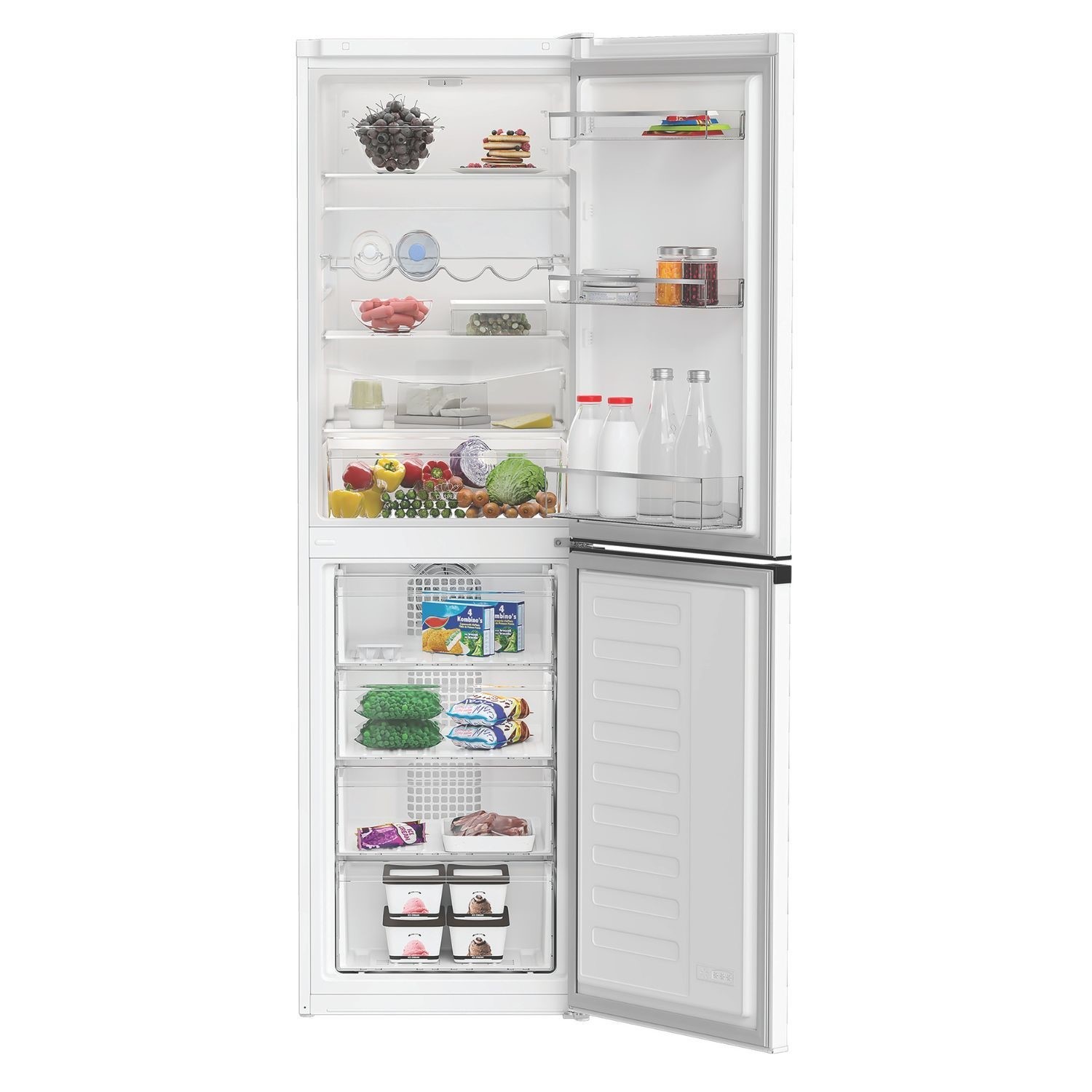 This Hotpoint freestanding fridge freezer offers a 50/50 split of fridge and freezer space and includes thoughtful technology focused on keeping your food fresh and reducing waste. Available in classic white, it has a generous capacity of 270L, which is ample space for 15 shopping bags of groceries - perfect for the weekly shop.