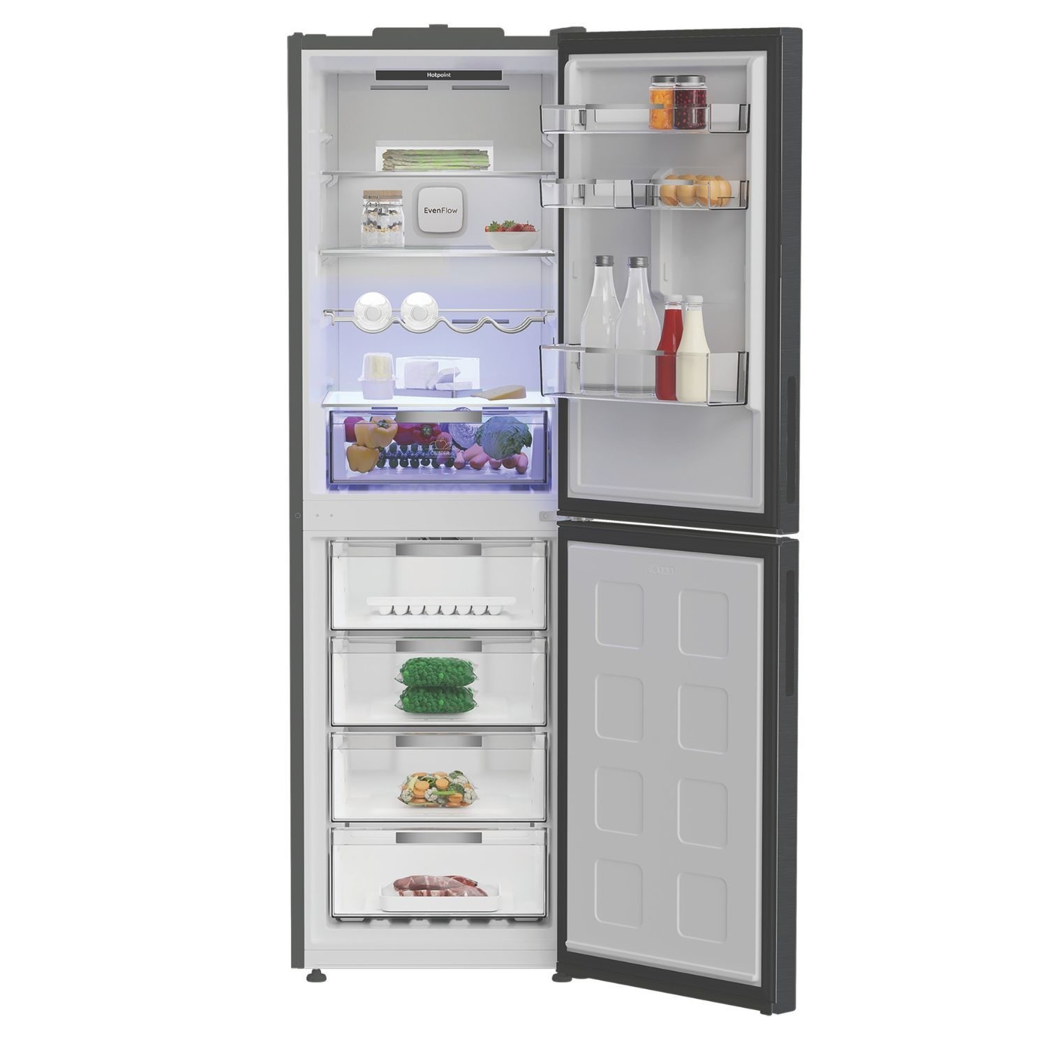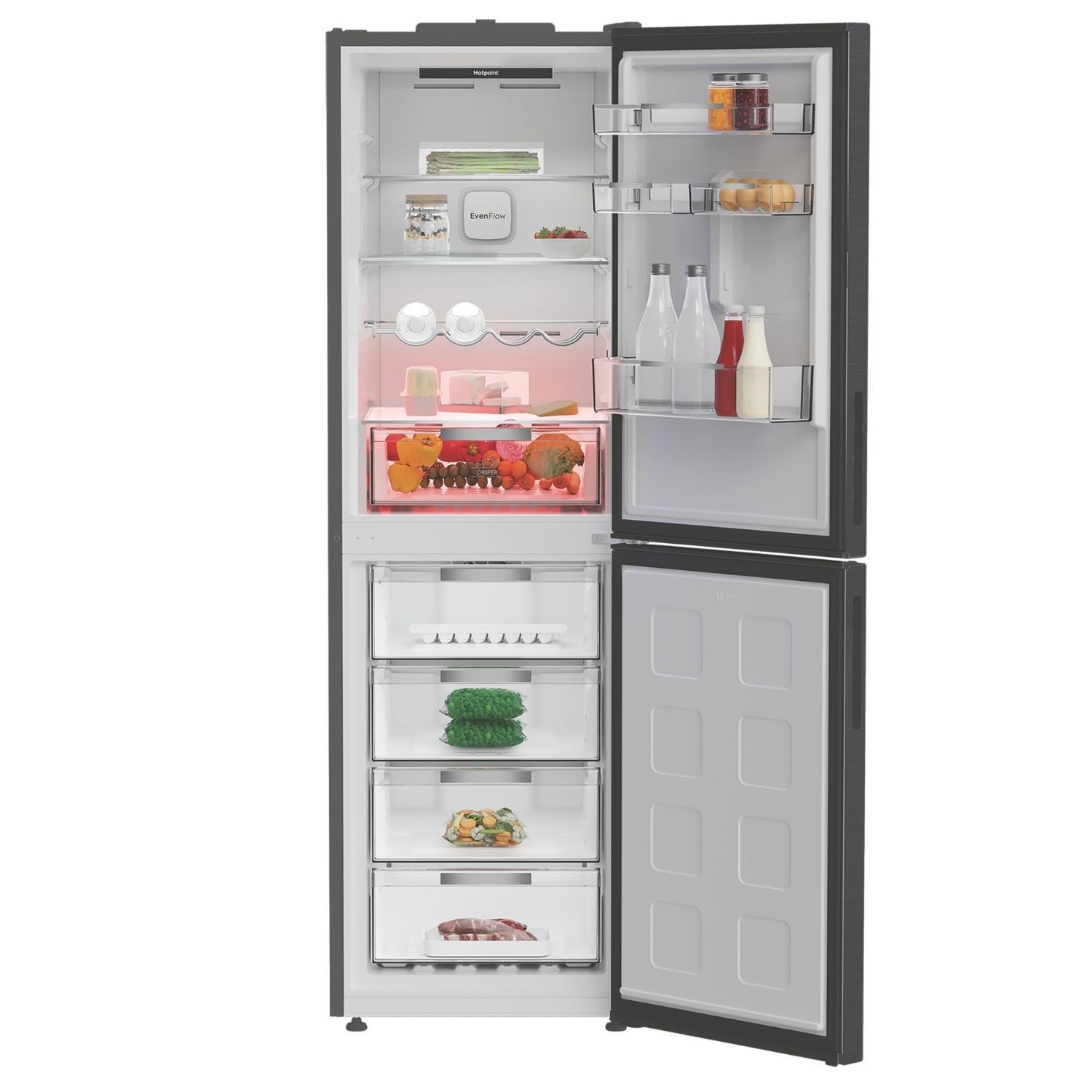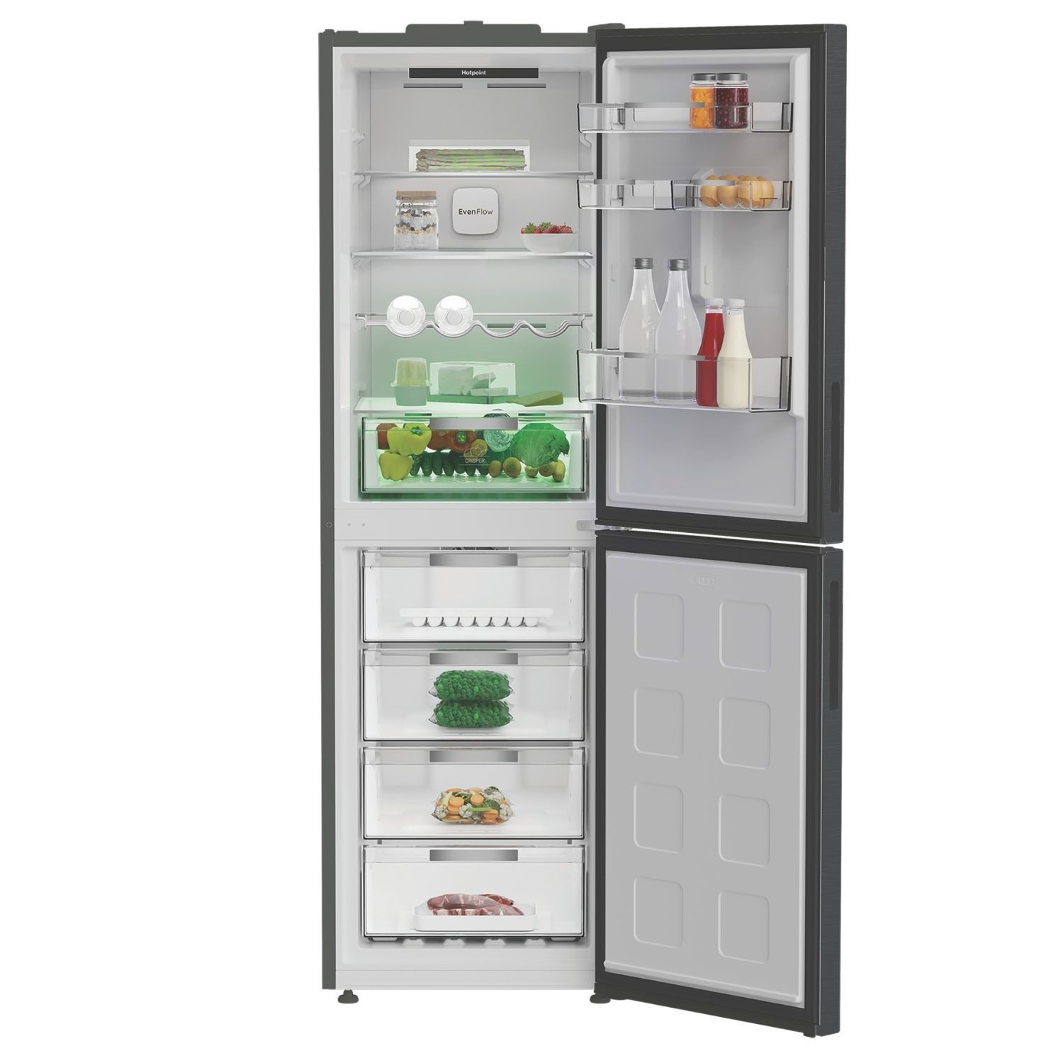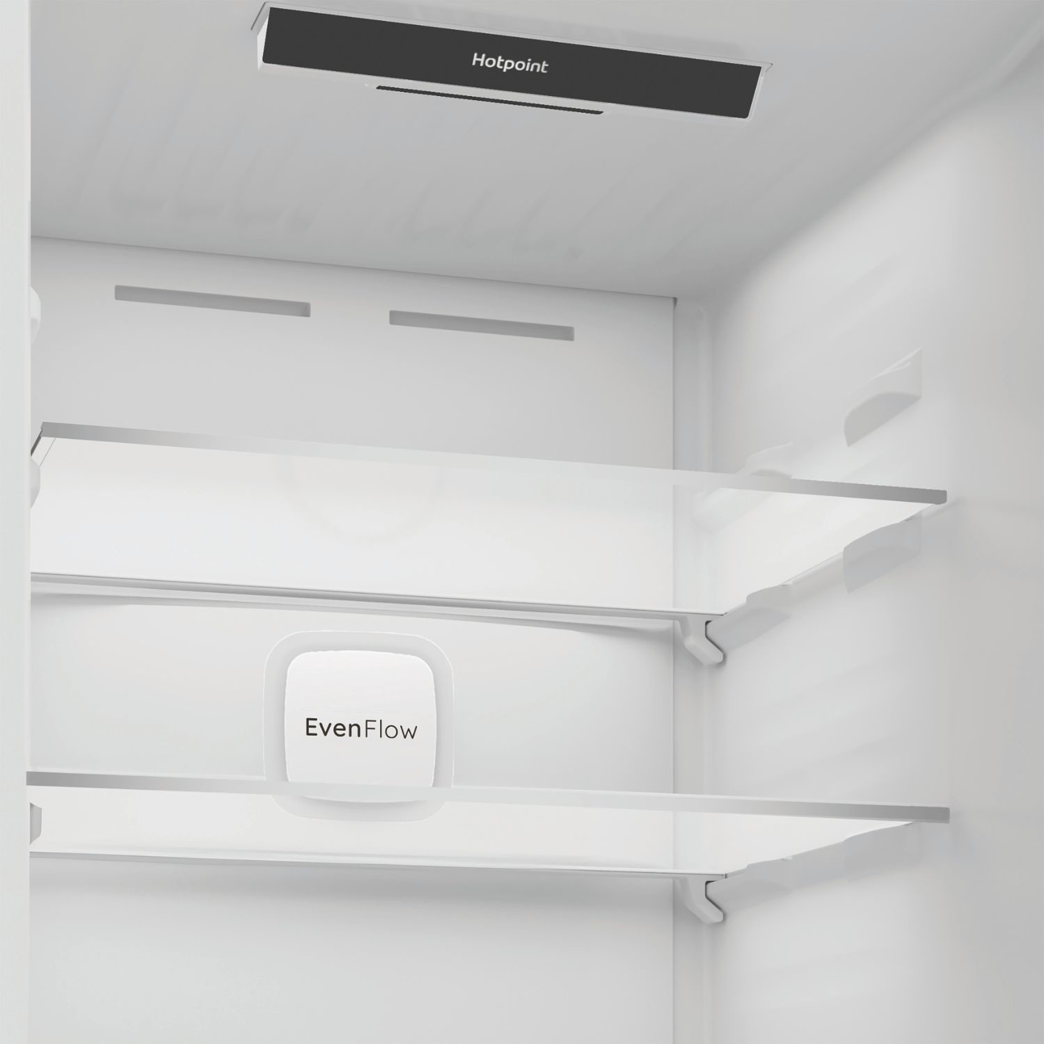 This Hotpoint freestanding fridge freezer is thoughtfully designed with a 50/50 split, giving equal space to chilling and freezing – ideal for families who need reliable storage for both fresh and frozen groceries. With its generous 317L capacity (holding up to 17 shopping bags), there’s more than enough room for your weekly essentials and family favourites.