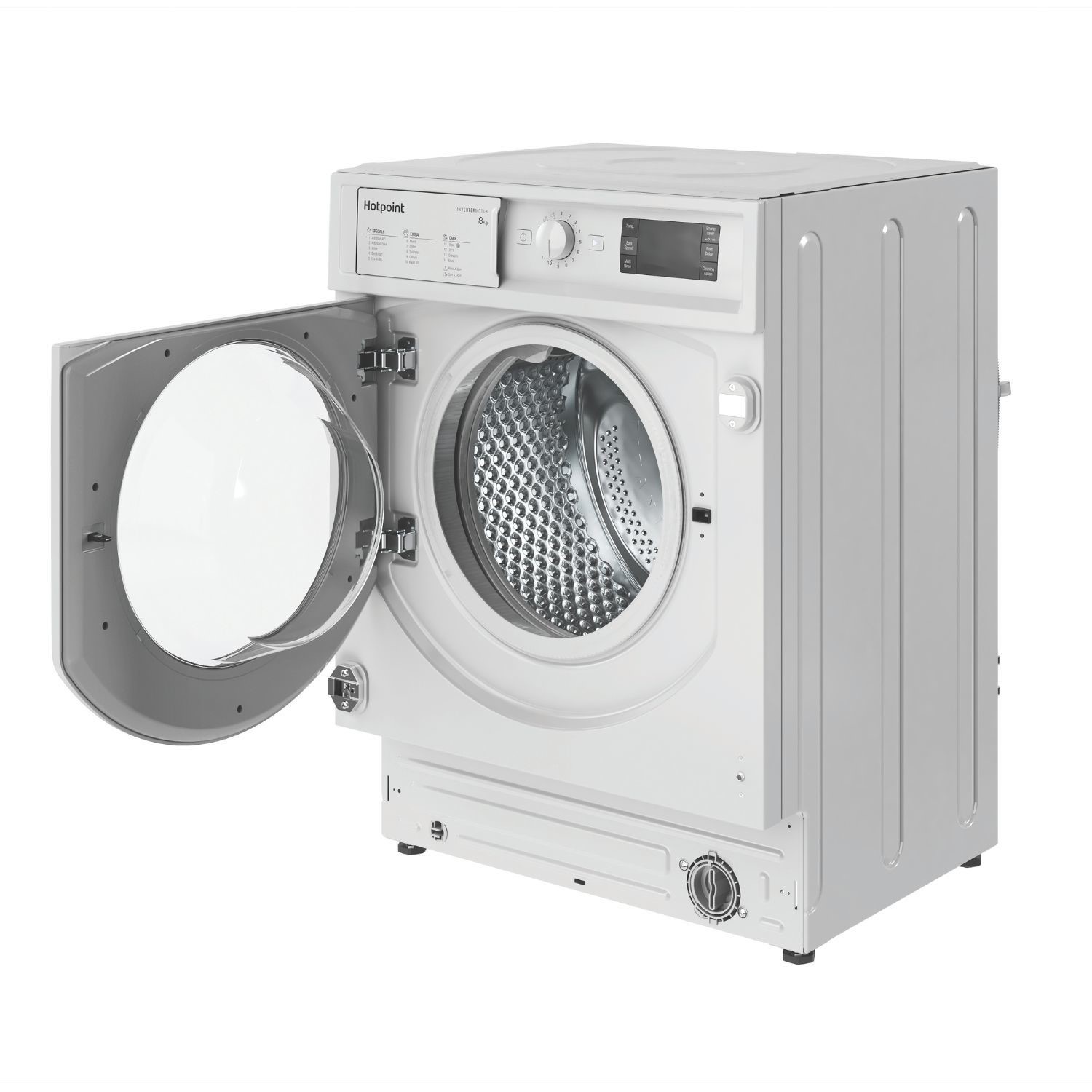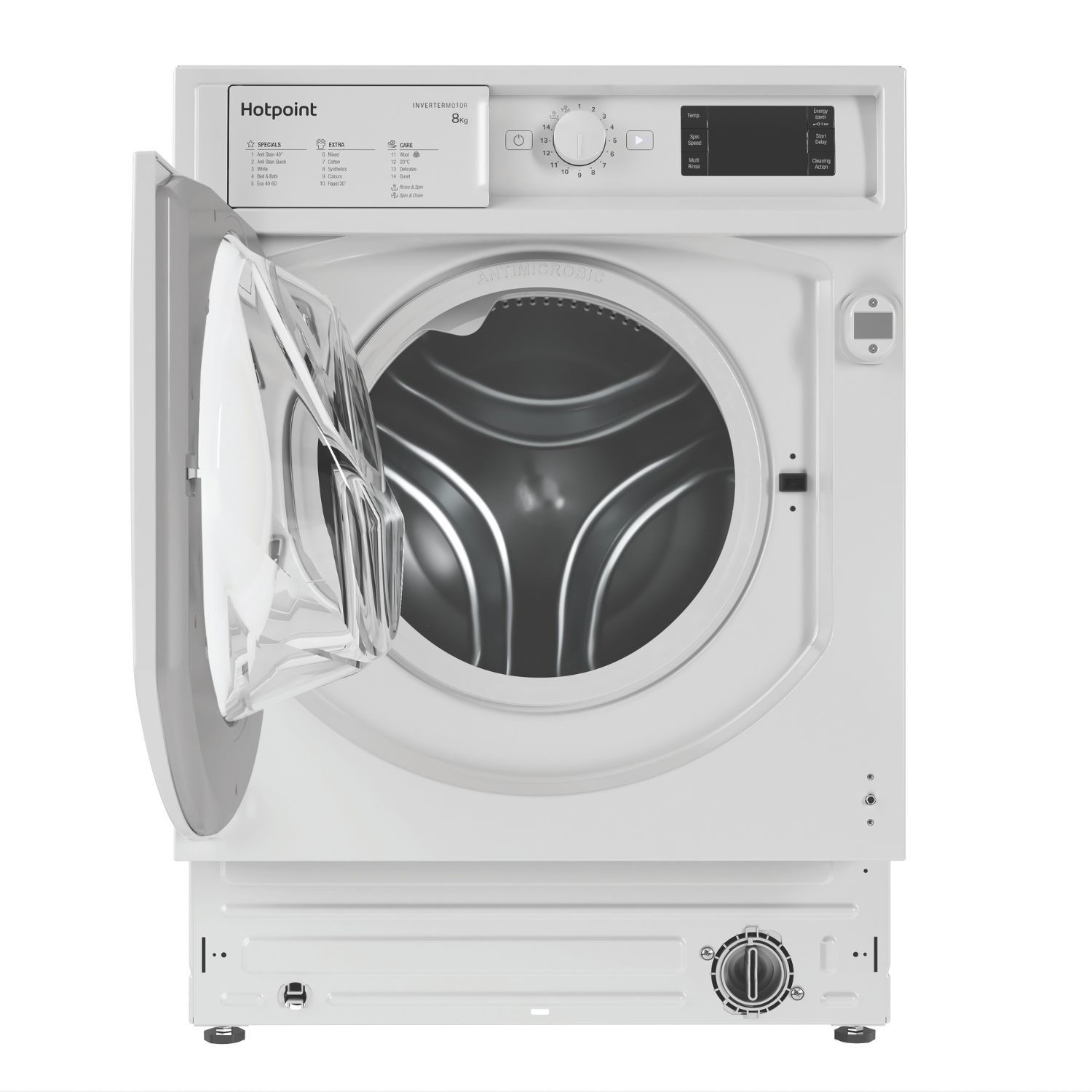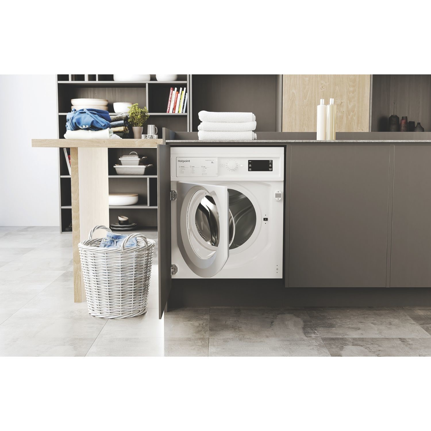 This Hotpoint integrated washing machine fits neatly into your kitchen, saving space and keeping things tidy. With its large 8kg drum capacity, you can wash more clothes in one go, which is great for busy homes and means fewer loads for you. Tough marks are no problem thanks to the Anti-stain and Anti-stain Quick programmes, making sure your clothes always look their best. Need a quick refresh? The Rapid 30' cycle gets your items clean in just half an hour.