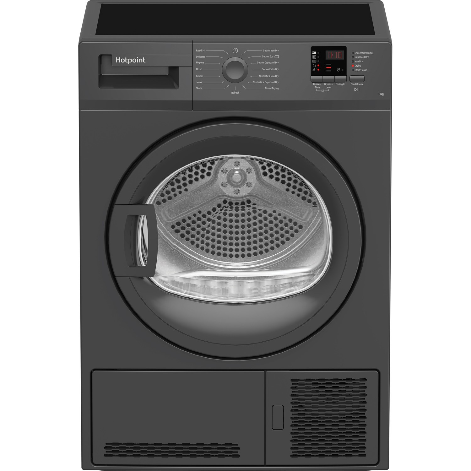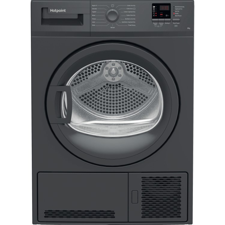The Hotpoint CHDC82GGGDUK condenser tumble dryer combines style and performance, featuring a sleek graphite grey finish and a spacious 8kg capacity, ideal for busy households. With 15 drying programmes, including Mixed, Delicates, Fitness, and Timed Drying, it ensures your clothes receive the right care every time. Sensor drying technology automatically detects moisture levels and stops the cycle when your laundry reaches the perfect dryness, preventing over-drying while saving energy. Plus, the anti-creasing function gently rotates clothes to minimise wrinkles, so you spend less time ironing.