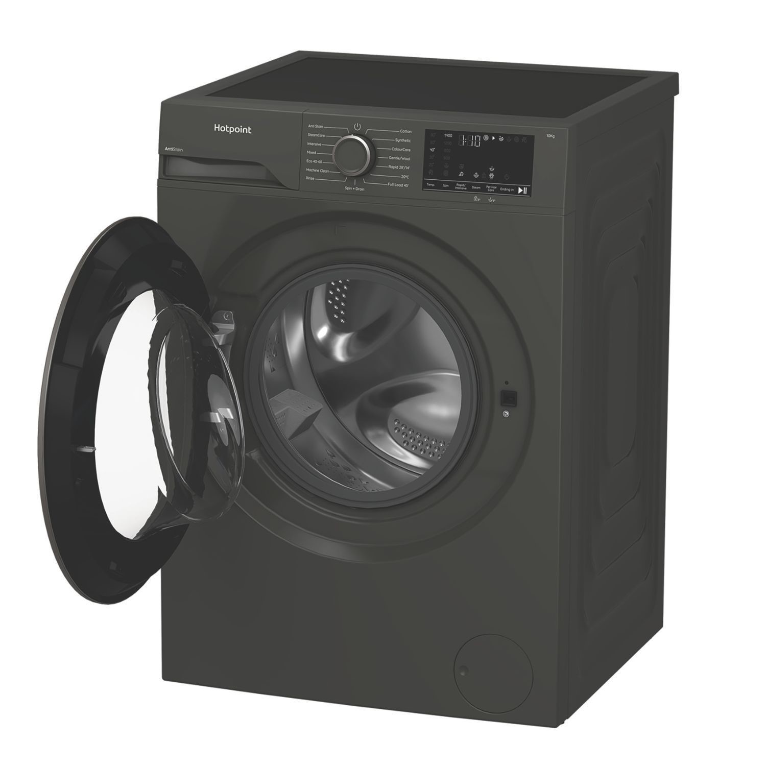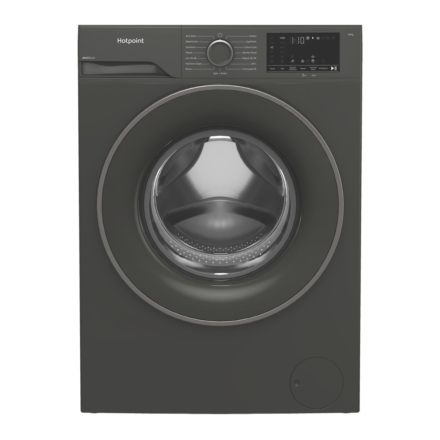 The Hotpoint H 101G AntiStain UK is a front‑load washing machine from Hotpoint featuring AntiStain performance to help improve cleaning results. It offers a 10 kg wash capacity suitable for medium to large laundry loads and supports everyday washing needs. With its 1400 rpm spin speed, it efficiently extracts water from clothes to help reduce drying time. Finished in classic graphite the design fits seamlessly into most laundry spaces while delivering trusted performance.