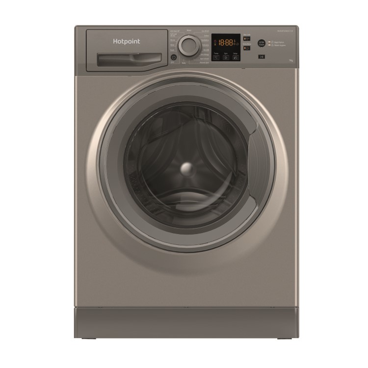 Keep home life moving with the Hotpoint NSWM 7469 GG washing machine. This sleek graphite washing machine has a 7kg drum capacity, perfect for daily loads. Plus, thanks to the inverter motor and A-rated energy efficiency class, it helps to keep your home quiet while helping to save money on your bills.