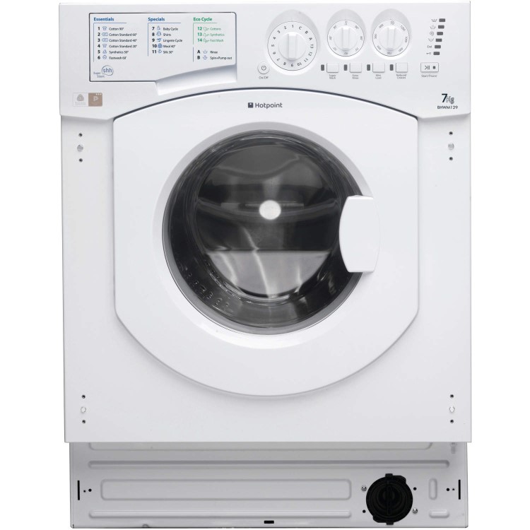 Hotpoint's integrated washing machine has 16 programmes and a 1200rpm variable spin speed. Designed to take care of your clothes, the anti-stain technology ensures that they remain look as good as they feel after washing.