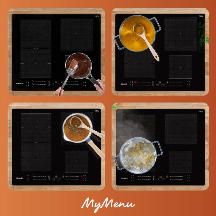 Embrace distractions in the kitchen and still enjoy tasty food. Hotpoint has you covered when it comes to Boiling, Melting, Keeping food Warm and Slow Cooking. My Menu provides four automatic functions for everyday use. With the touch of a button, you can prevent pans from boiling over, melt chocolate without sticking, keep food at the perfect serving temperature and slow cook for tender dishes.