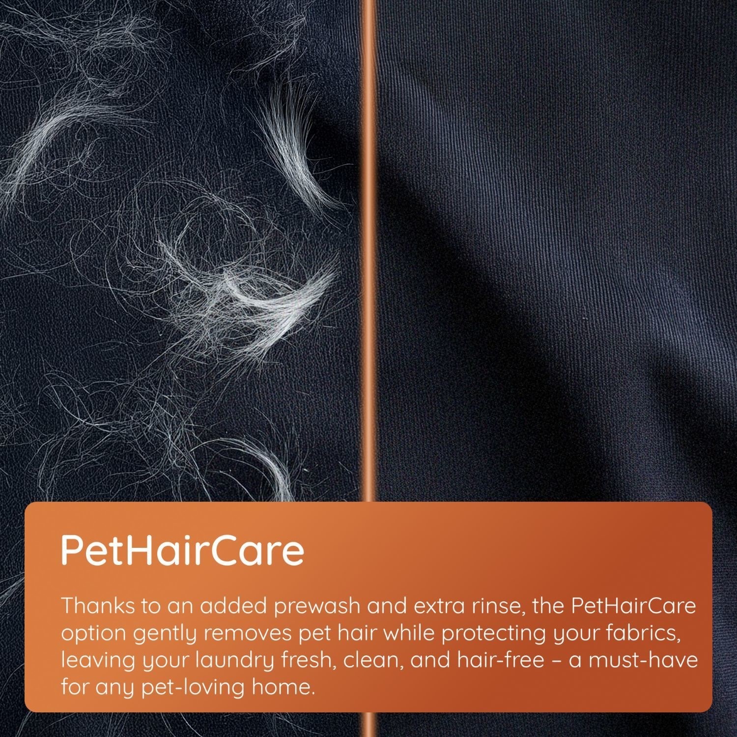 Thanks to an added prewash and extra rinse, the PetHairCare option gently removes pet hair while protecting your fabrics, leaving your laundry fresh, clean, and hair-free – a must-have for any pet-loving home.