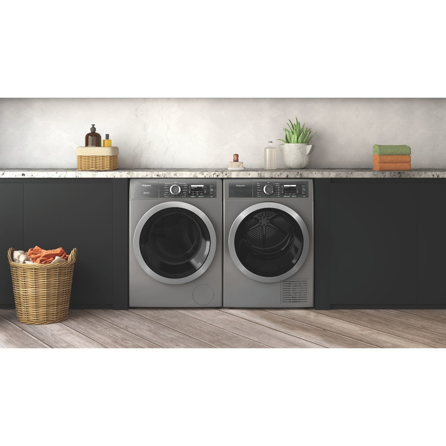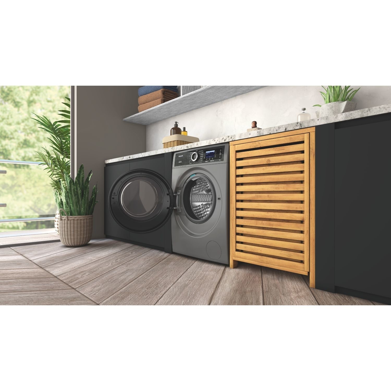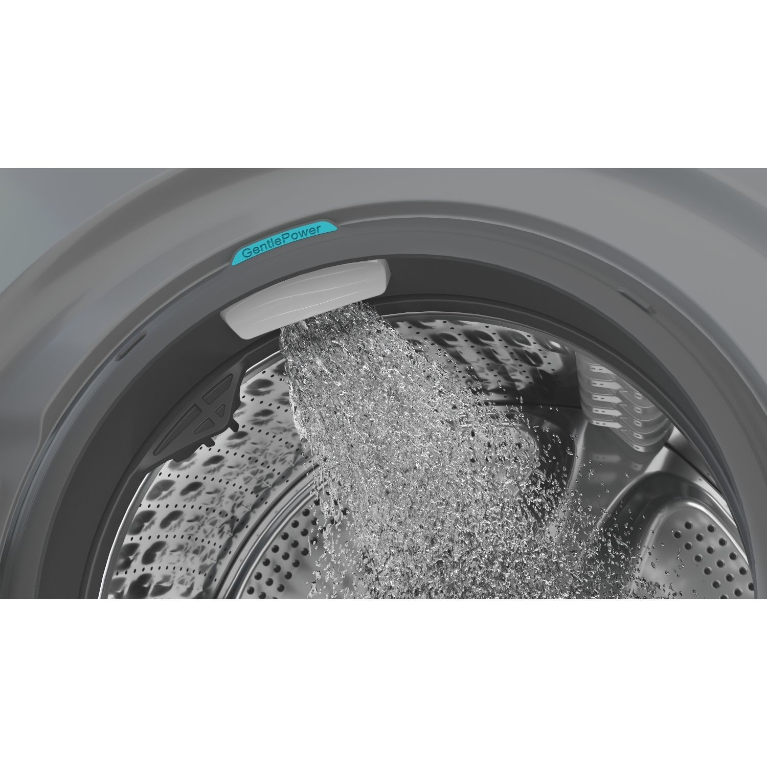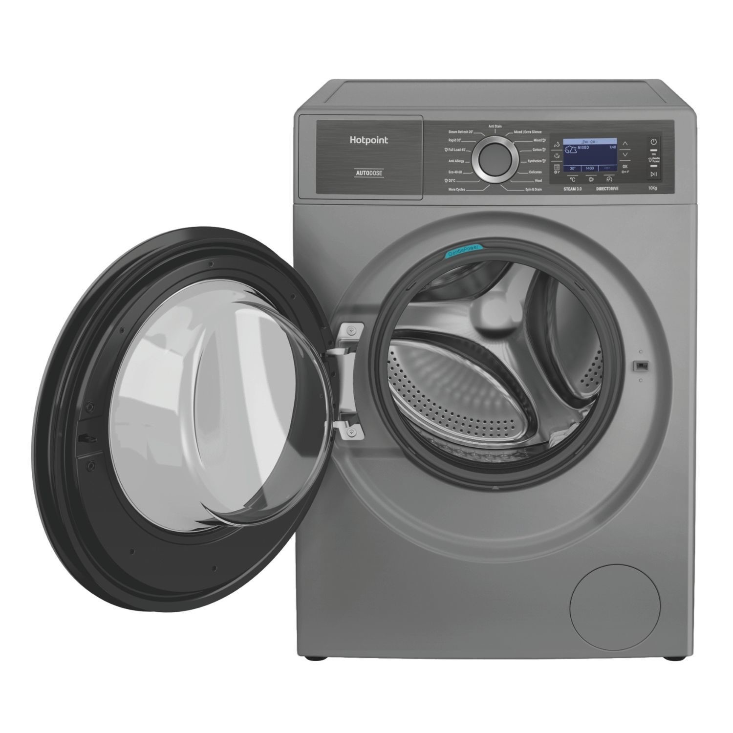 Tackle the laundry pile with ease using this stylish silver Hotpoint H809ADSGPOWERUK 10kg Washing Machine. The generous 10kg capacity is perfect for large families, giving you ample space to wash bulky items like duvets or the whole family's weekly load in one go. Powered by a quiet Direct Drive motor, this freestanding washing machine operates smoothly, making it an excellent choice for open-plan living where peace and quiet are essential.