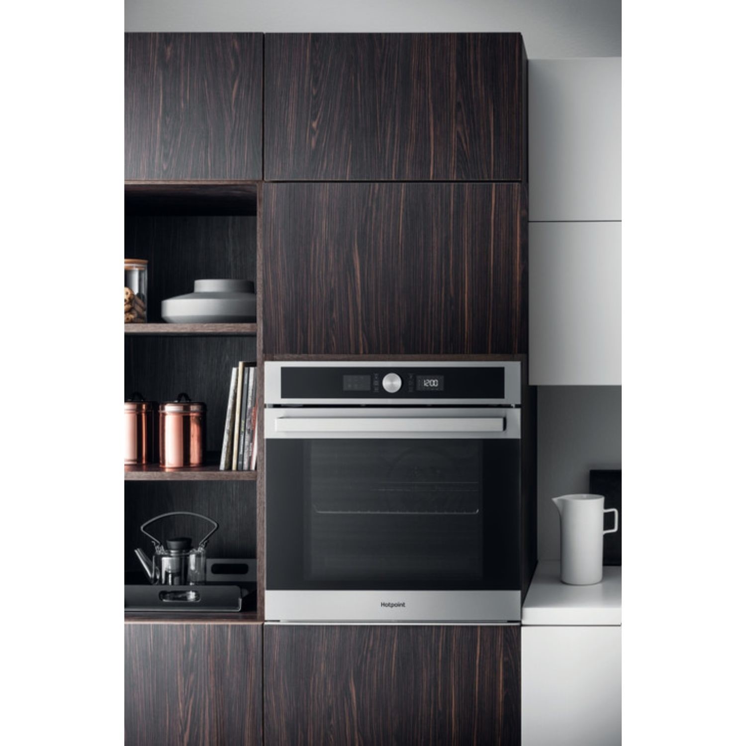Bringing you an appliance that’s dedicated to achieving the very best results from all your dishes, the Hotpoint Class 5 S15854PIX Single Oven offers superbly even heat and automatic cleaning functions. With multiflow Technology, a new style of convection system creates an all-enveloping heat flow which pushes heat into every inch of the oven cavity for consistently even, delicious dishes every time – whichever shelf you’re using. Ideal for ensuring perfectly risen cakes and breads, plus reducing cold spots in your favourite dishes. For meat lovers, the Turnspit is a handy accessory that lets you spit-roast your favourite meats for a slow-cooked, juicy experience. Removing the need to clean your oven ever again, this model comes with Pyrolytic Cleaning. Heating the cavity up to 500°C, the quadruple glazed door automatically locks whilst any fat, grease and food residue is burnt to a small pile of ash, ready to be wiped away. Costing just a few pence per cycle, it’s easy-cleaning which removes the need for chemicals. We’ve even applied an Anti-Fingerprint coating to the oven’s exterior to give a resistant finish so the surface is always gleaming and bright. Easily operated through the electronic Mono Dial for full control, with eight traditional and six automatic functions including grill, defrost and pizza and bread, the Hotpoint Class 5 oven provides you with the ideal temperature for cooking your favourite ingredients and meals. Designed for households that love good food without fuss or complication, this Hotpoint oven brings 71L of capacity wih an A+ energy rating and exceptional quality to your table, every meal.