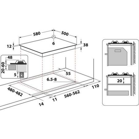- Cut-out dimensions: W 560 x D 480mm