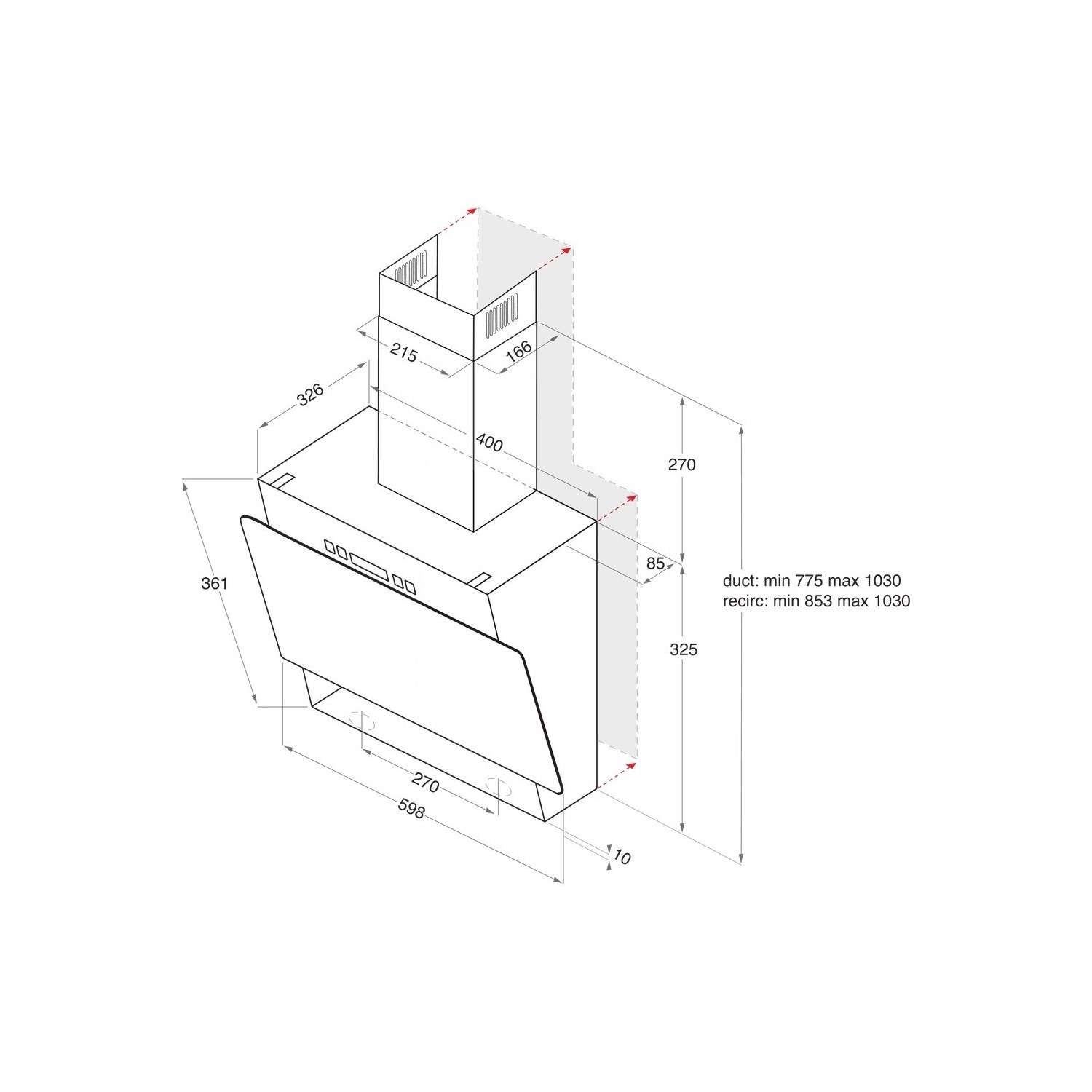- Dimensions - (H)775-1030 x (W)598 x (D)326 mm