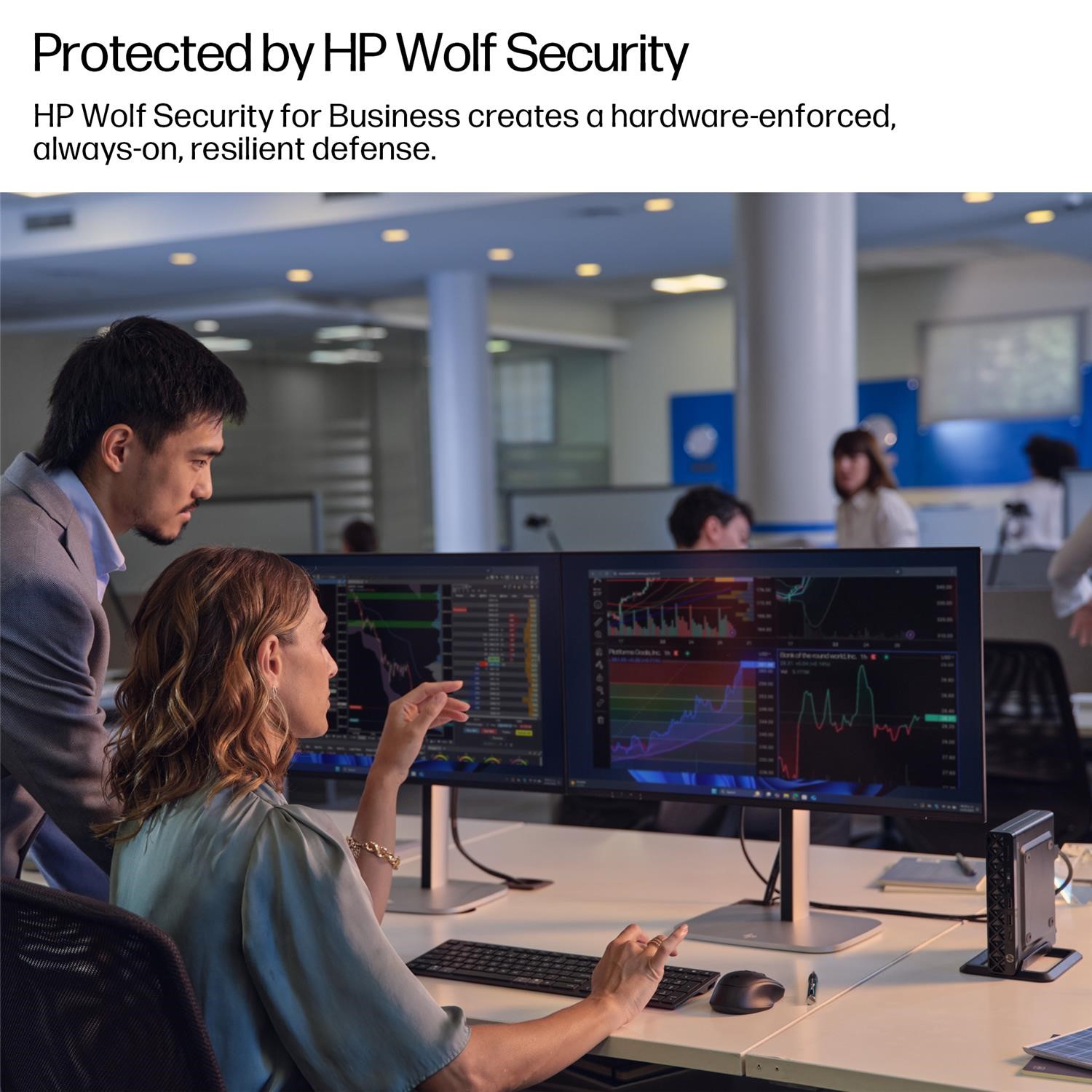 The HP EliteDesk 8 Mini G1i AI combines power and portability in a sleek, space-saving design. Its compact black chassis fits effortlessly into any workspace, allowing for flexible placement without sacrificing performance. Perfect for modern offices, collaborative spaces, or home setups.