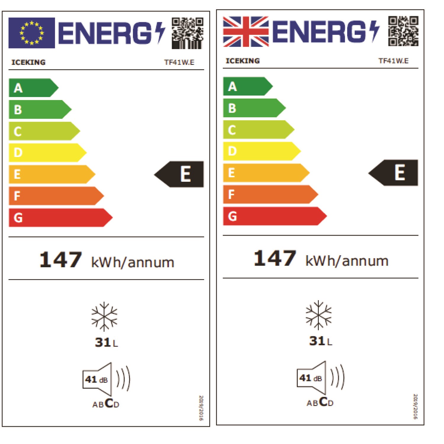 - 31 Litres of usable freezer space, enough for 1 bag of groceries