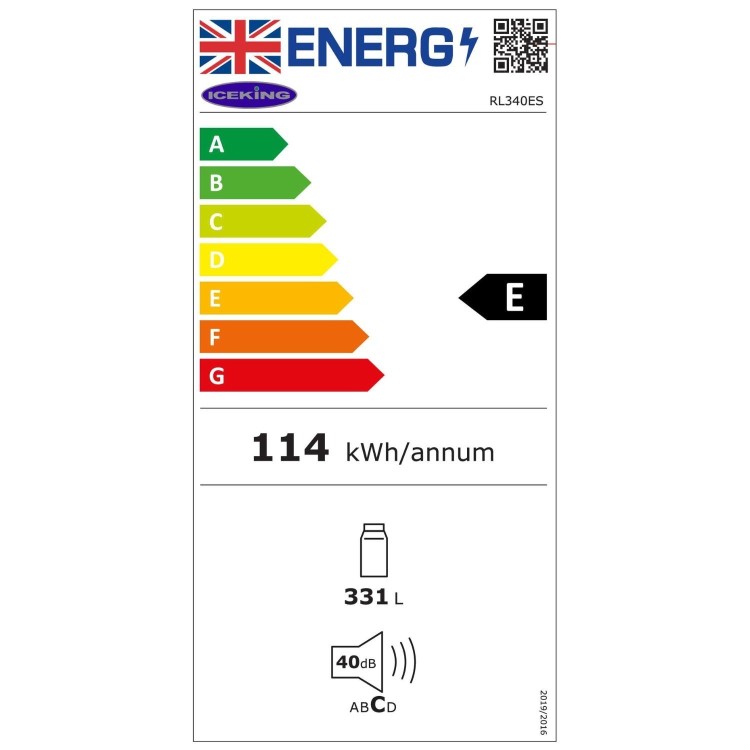 This spacious 331-litre refrigerator features six adjustable glass shelves, a salad crisper, and a bright interior light for optimal organization and visibility. With an E energy rating and a two-year guarantee upon registration, it combines reliability and generous storage capacity.