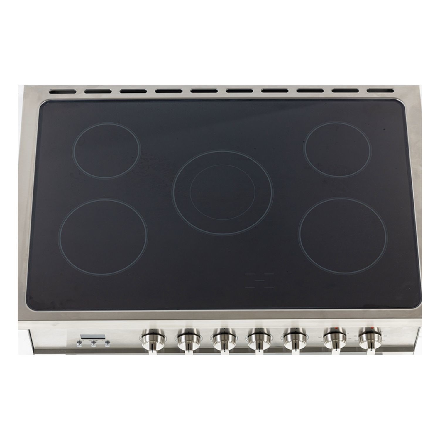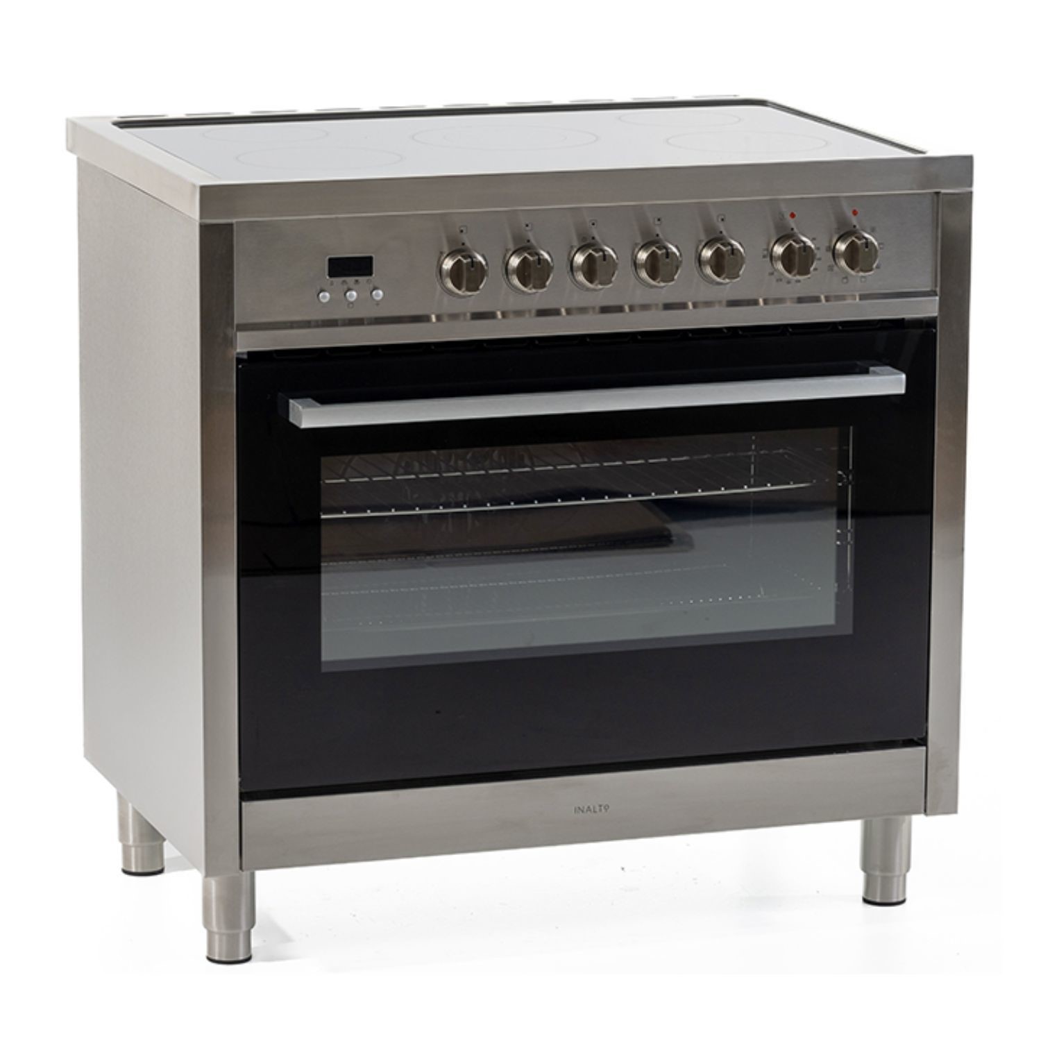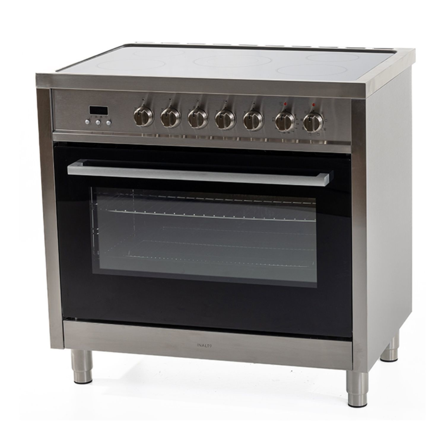With its sleek stainless steel finishing, the InAlto 90cm Single Ceramic Range Cooker makes a contemporary statement in any kitchen. Featuring a 5 zone ceramic cooktop, 103L oven capacity and seven electric oven functions this oven can take on any recipe with ease. Utilising thoughtful safety features, such as easy-slide heavy duty chrome side racks, the exemplary specifications of the oven range are mirrored by modern British design. Furthermore, keeping your oven clean is effortless with an easily removable inner glass door design & an enamelled interior that prevents the build up of fats or oils.