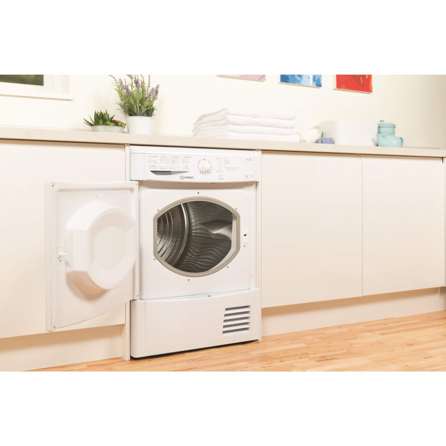 The Indesit dryer has special sensors within the drum which measure the moisture levels of your laundry load. The dryer will then adjust its settings to suit your laundry and deliver an effective drying cycle without over drying your clothes, efficiently saving energy as well as protecting your laundry.