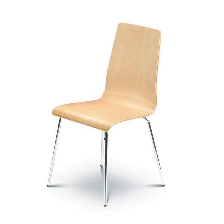 The Julian Bowen Mandy Maple Dining Chair is a stylish bentwood chair with real wood veneer and a durable lacquered finish with modern chrome legs.