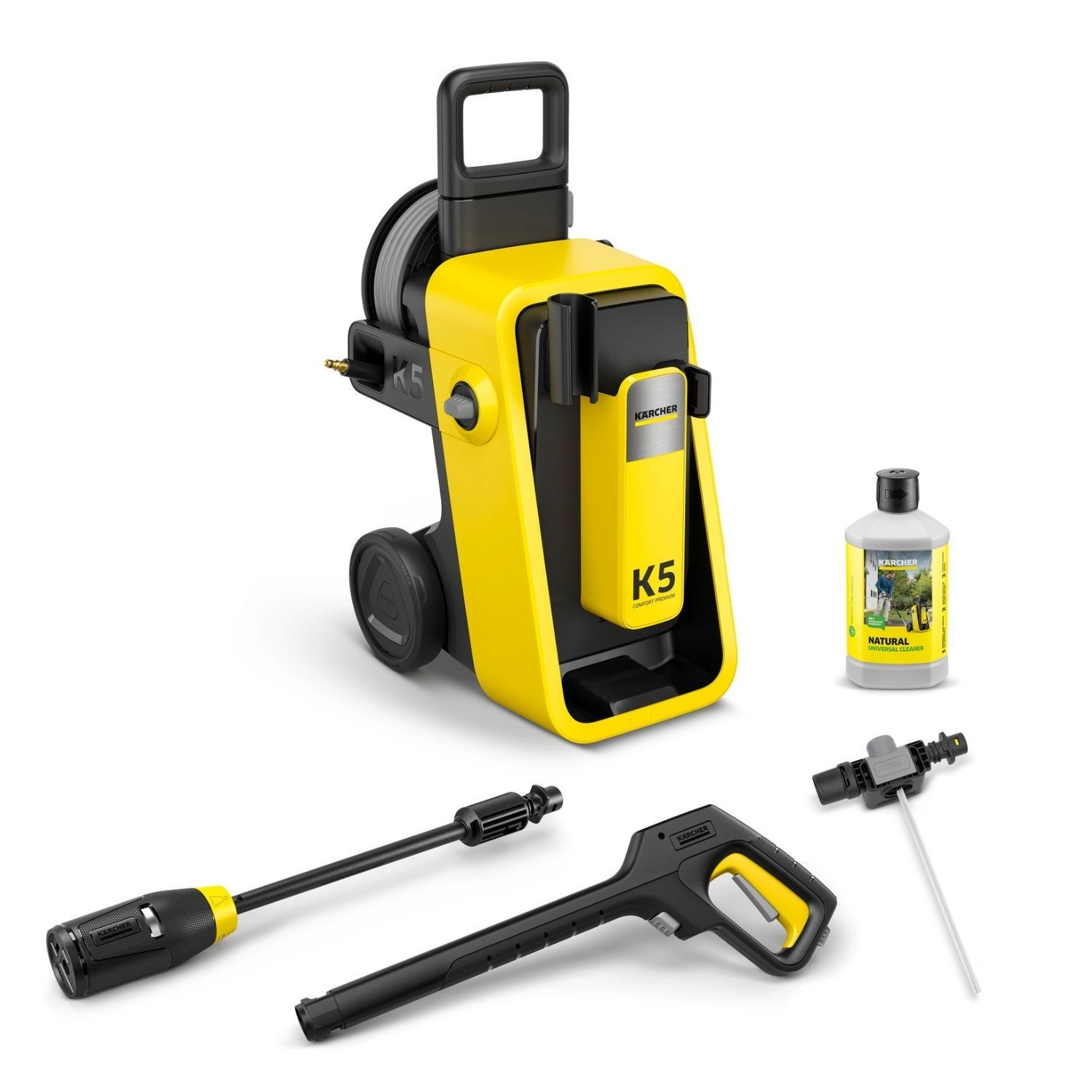 The Kärcher K5 Comfort Premium is a powerful high-pressure washer designed for frequent use on moderate to heavy dirt. Perfect for cleaning patios, driveways, vehicles, garden furniture, and stone surfaces, it combines high performance with premium convenience features and smart cleaning technology for effortless results.