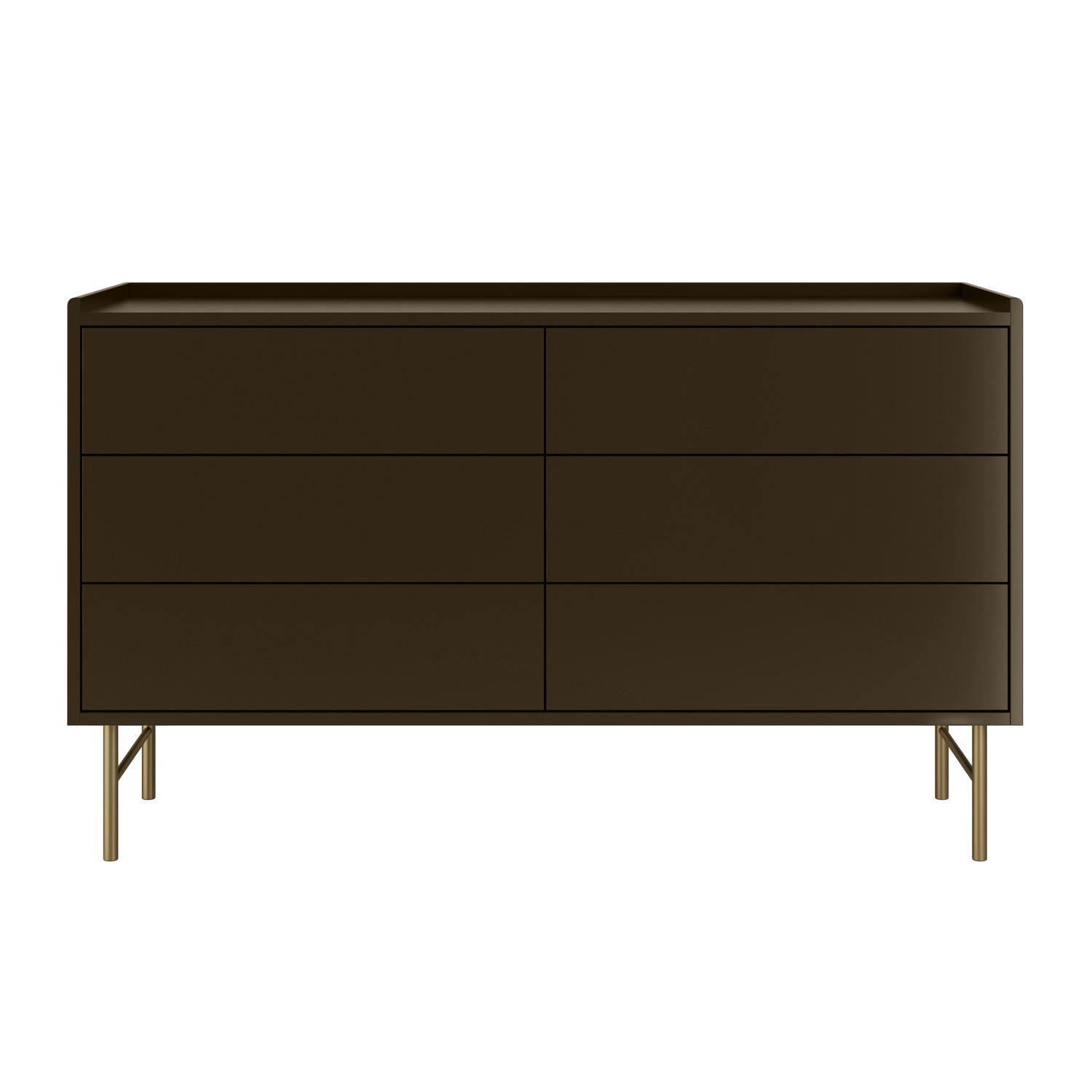The Zane Chest of 6 Drawers combines sleek, contemporary design with practical functionality, making it a refined bedroom dresser. Its minimalist, handle-free form features six spacious push-to-open drawers on smooth metal runners, perfect for storing clothes, bedding, and everyday essentials. A subtle border around the top keeps surface items secure, while the warm khaki green matt finish and contrasting brushed-gold legs add a touch of understated luxury. Elevated for easy cleaning underneath and crafted from durable materials, the Zane chest of 6 drawers is a stylish, modern, and long-lasting addition to any bedroom.