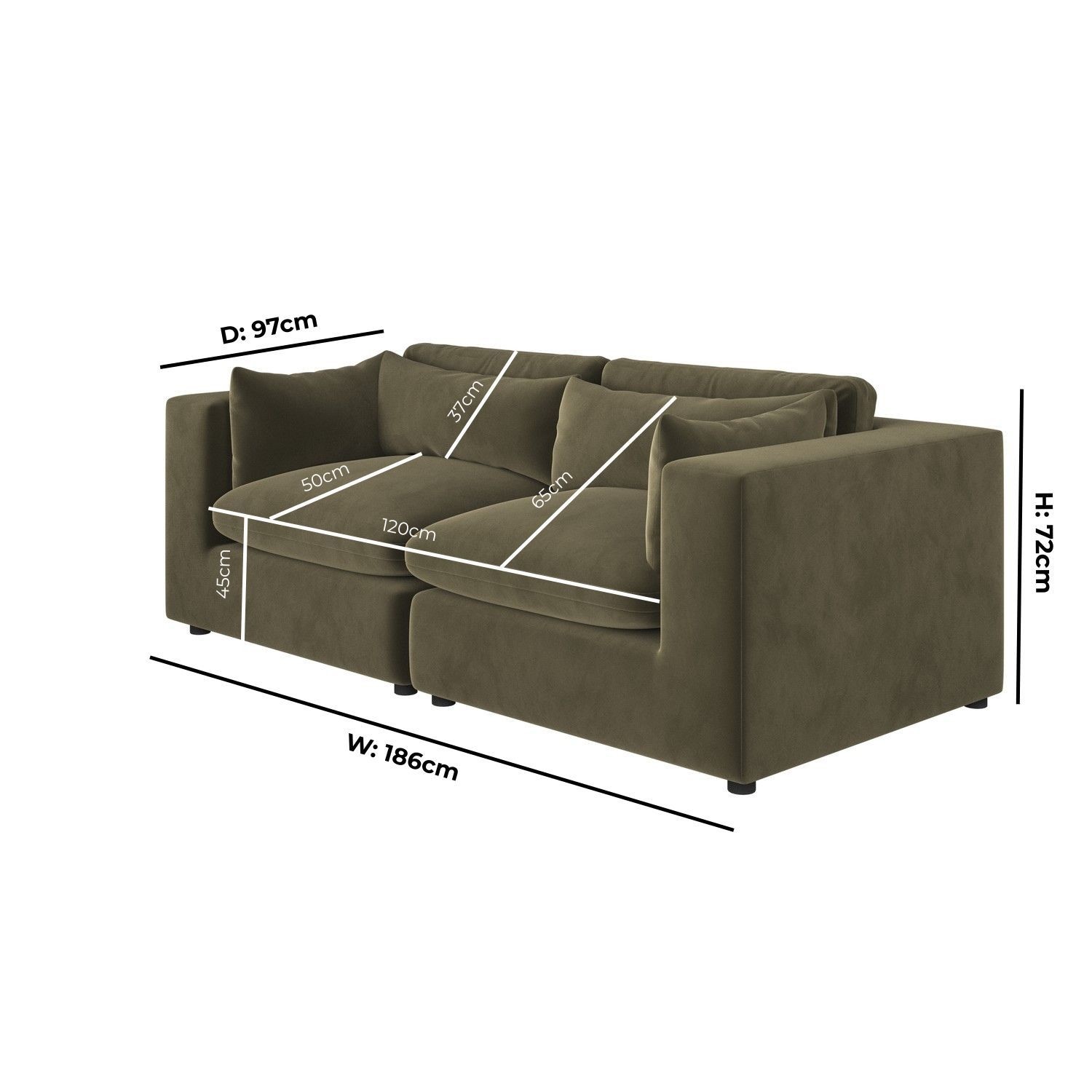 - Dimensions: W186 x D97 x H72 cm