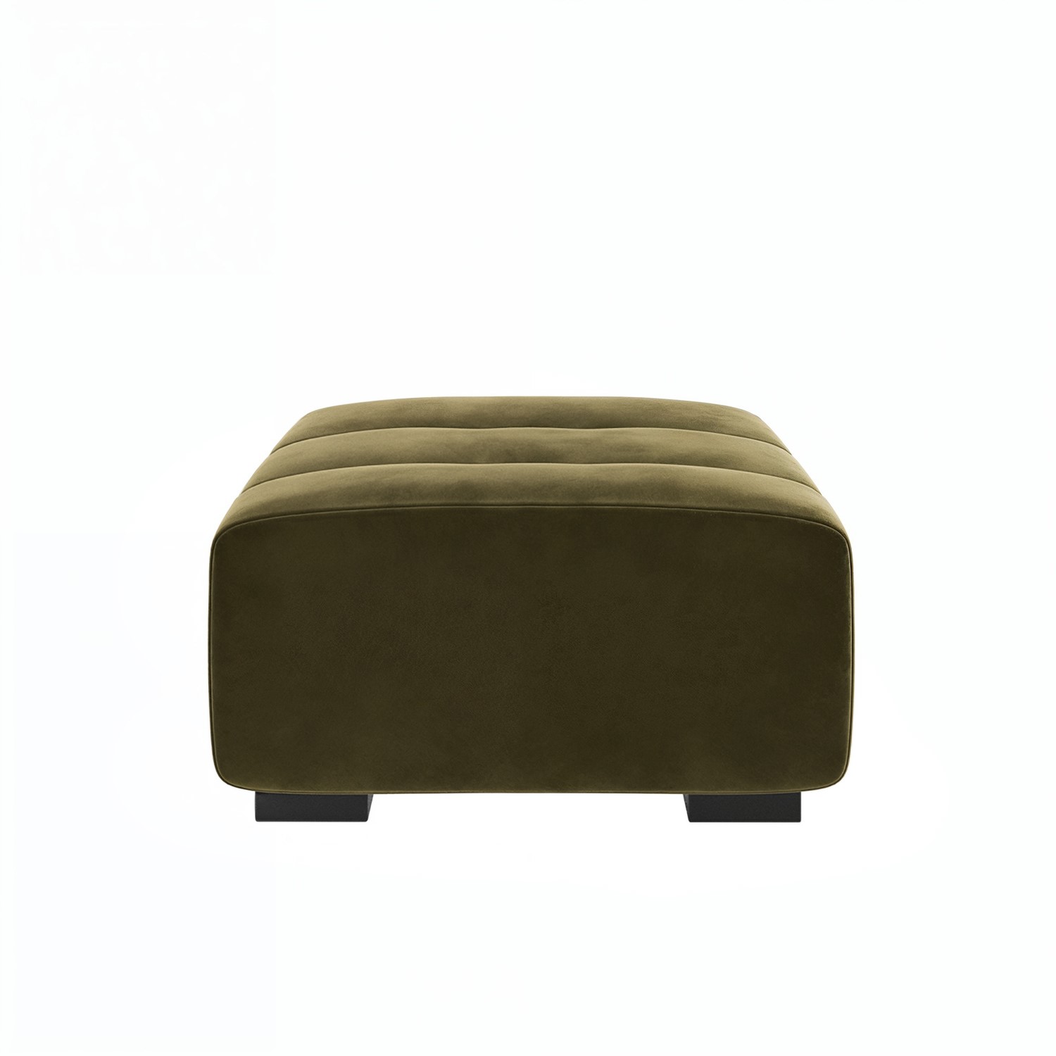 Elevate your living space with the stylish Elod Footstool, a perfect blend of comfort and contemporary design. Upholstered in luxuriously soft khaki green velvet and finished with chic ribbed detail, it brings a refined touch of modern elegance to any room and is the perfect partner to our Elod love seat or sofa. Whether used as a footrest, extra seating, or a statement accessory, Elod's versatile design effortlessly combines sophistication with everyday functionality.