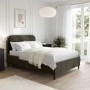 The Zara bed frame is perfect for lovers of minimalist style. This modern bed combines simplicity and comfort in one contemporary design. Featuring a thick, padded curved headboard upholstered in soft-to-touch khaki green velvet fabric and stylish tapered legs. Built with a sturdy wooden frame and a sprung-slatted base supported by central legs, this bed ensures long-lasting durability and stability. This bed fits a UK standard small double-size mattress.