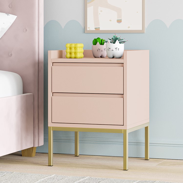 - Kids matt baby pink bedside table with gold legs
