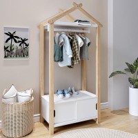 The Mylo house-shaped wardrobe features an open hanging rail for clothing, plus a handy shelf and two cupboards to store shoes and accessories. Positioned in a kids' bedroom or a nursery, the cut-out handles are ideal for little hands. Complete this set with matching pieces from the Mylo children's bedroom furniture collection.