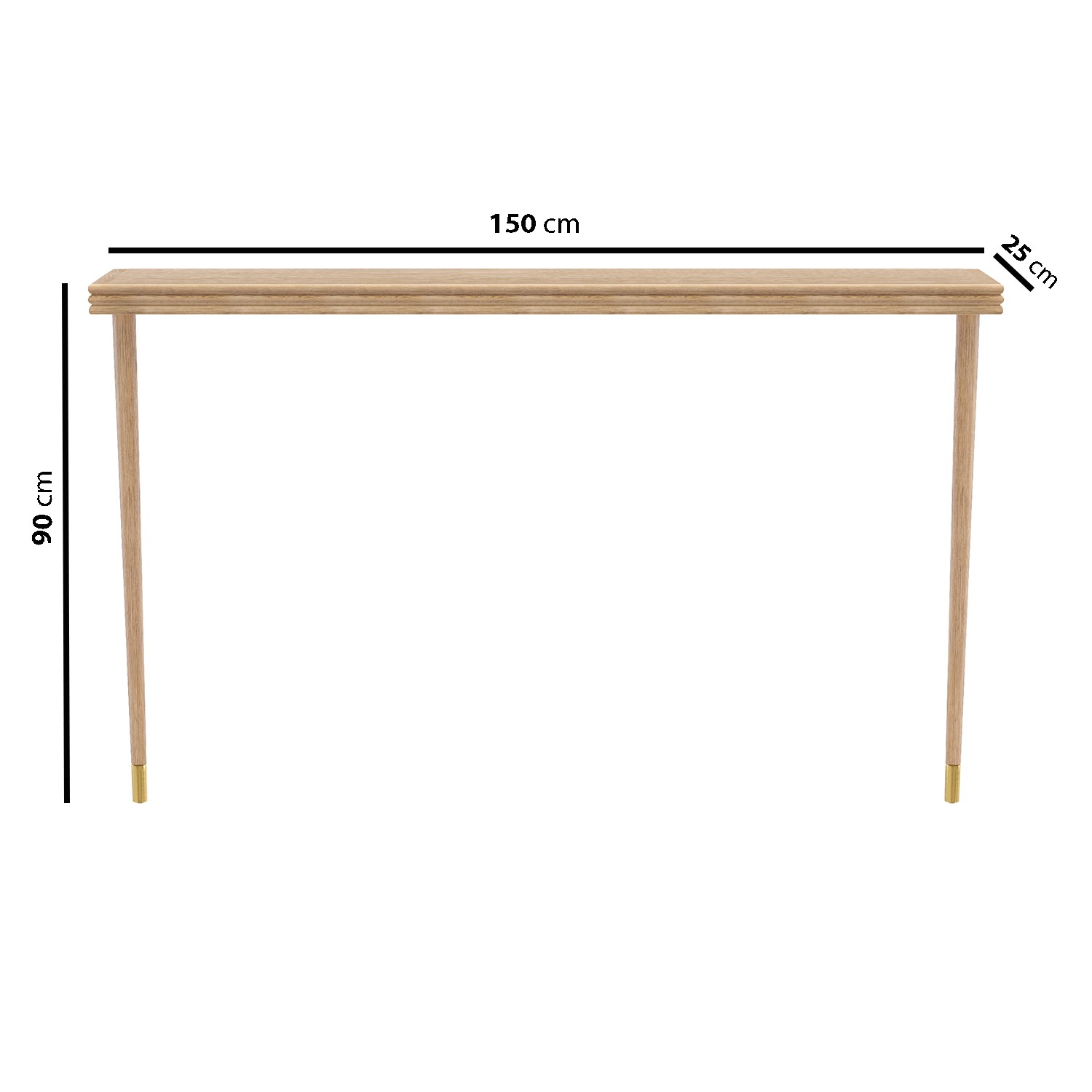 Enhance your space with this beautifully designed wall-mounted radiator cover, offering a perfect blend of style and function. The natural weathered oak finish and elegant fluted detailing create a refined aesthetic, while the brass-tipped legs add a modern touch. Ideal for narrow spaces, this radiator cover provides a sleek surface for displaying décor, storing essentials, or adding a sophisticated accent to your home. Designed for stability and durability, crafted from high quality solid oak, it’s a stylish solution for contemporary living. This extra small console table is perfect for compact spaces, offering a stylish yet functional surface.