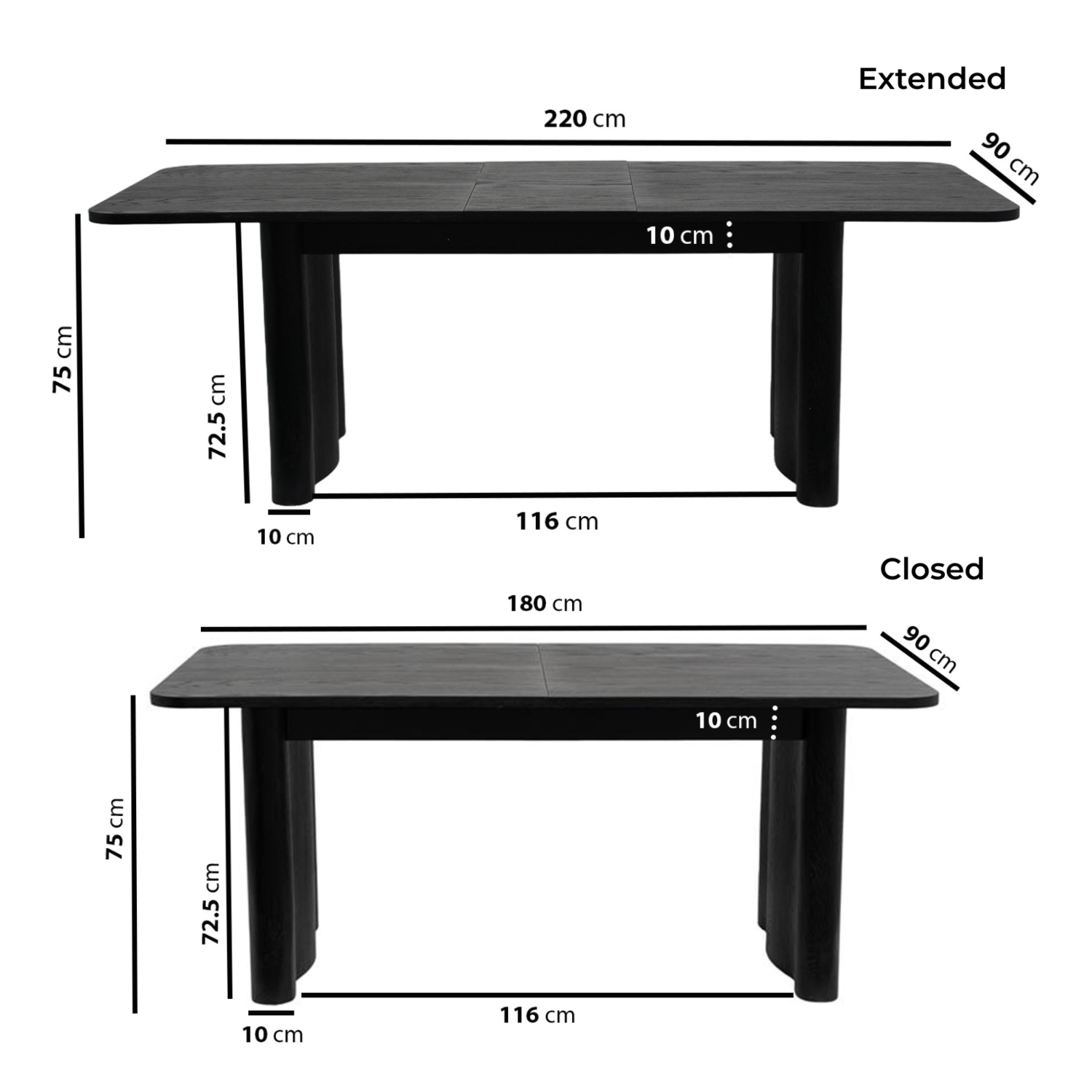 This rectangular Wave dining table brings style and substance to your dining space. With its bold black finish and sculptural wave-inspired legs, it’s more than just a table—it’s a design statement. The cleverly concealed butterfly extension means you can adapt your setup in moments. Smart, sleek and functional.